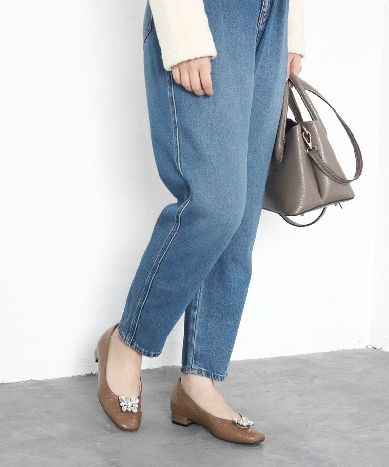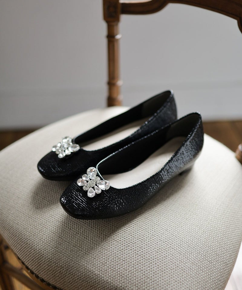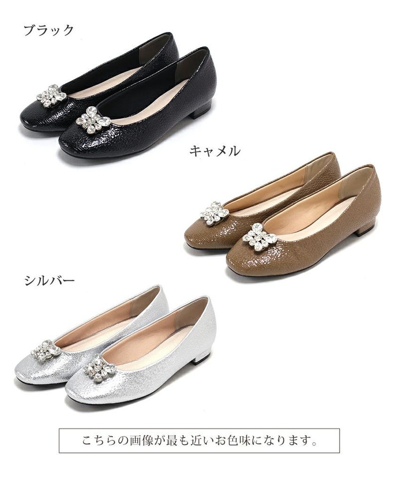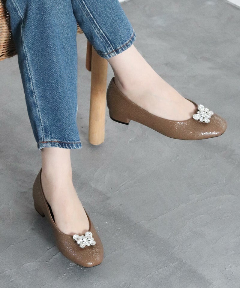 4. かかとがパカパカしにくい!ビジューつきスクエアトゥローヒールパンプス