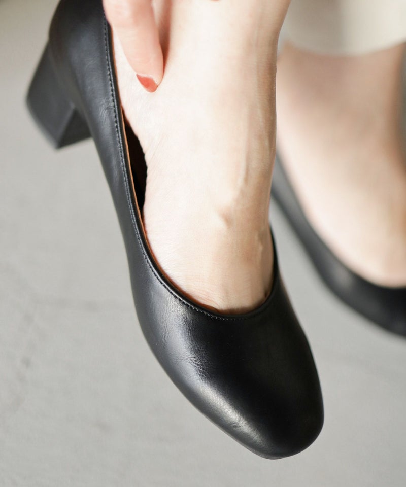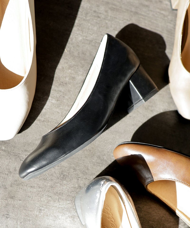 スクエア型のつま先は、きちんと感がありオフィスやフォーマルなシーンにもぴったりです。