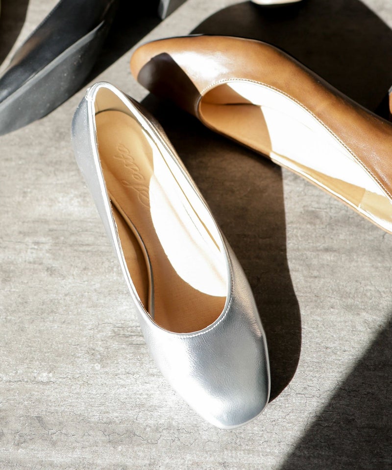 外反母趾の方でも窮屈になりにくいように、つま先は幅を残しつつ足がすっきり見えるフォルムに仕上げました。