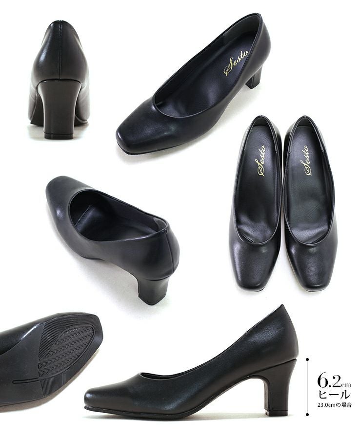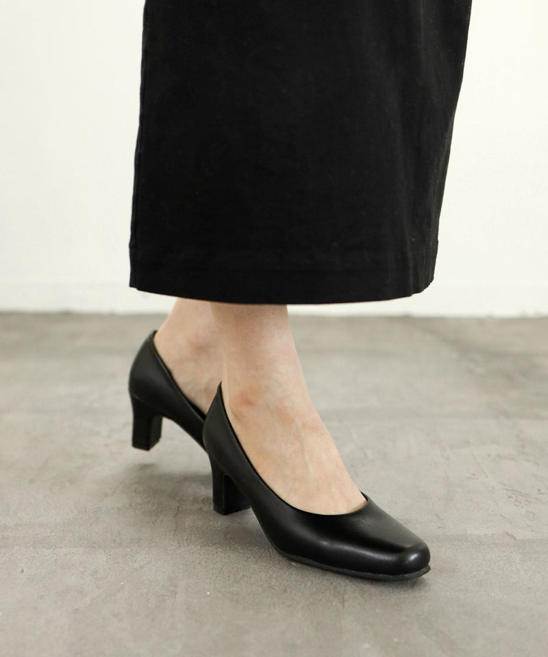 ゆったり幅広ふわふわクッションインソールスクエアトゥヒールパンプス ▲返品交換不可