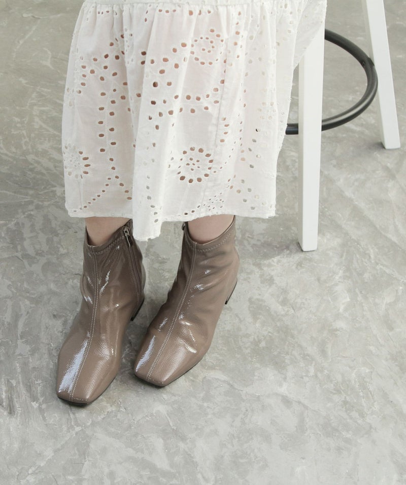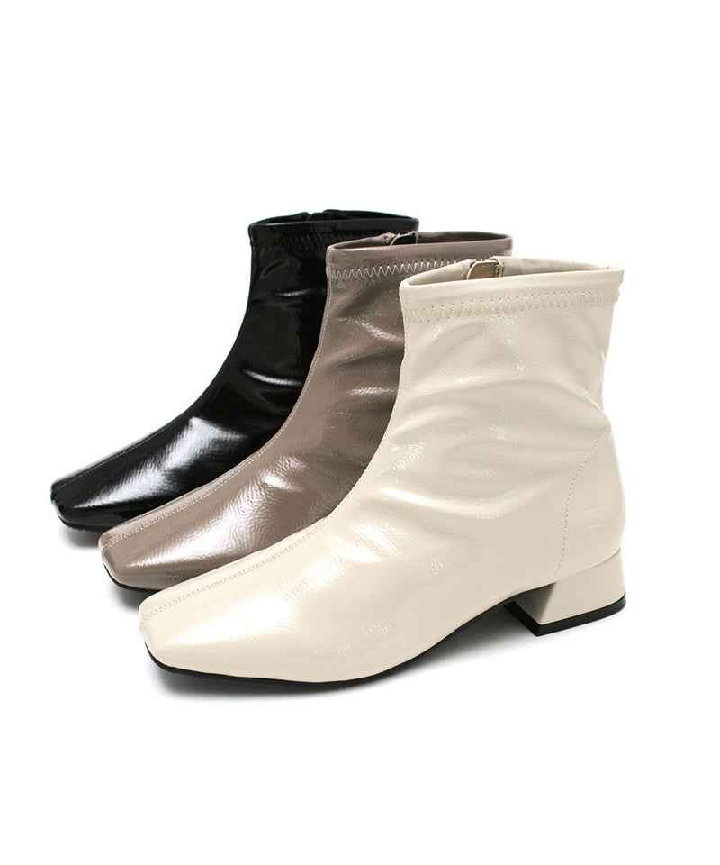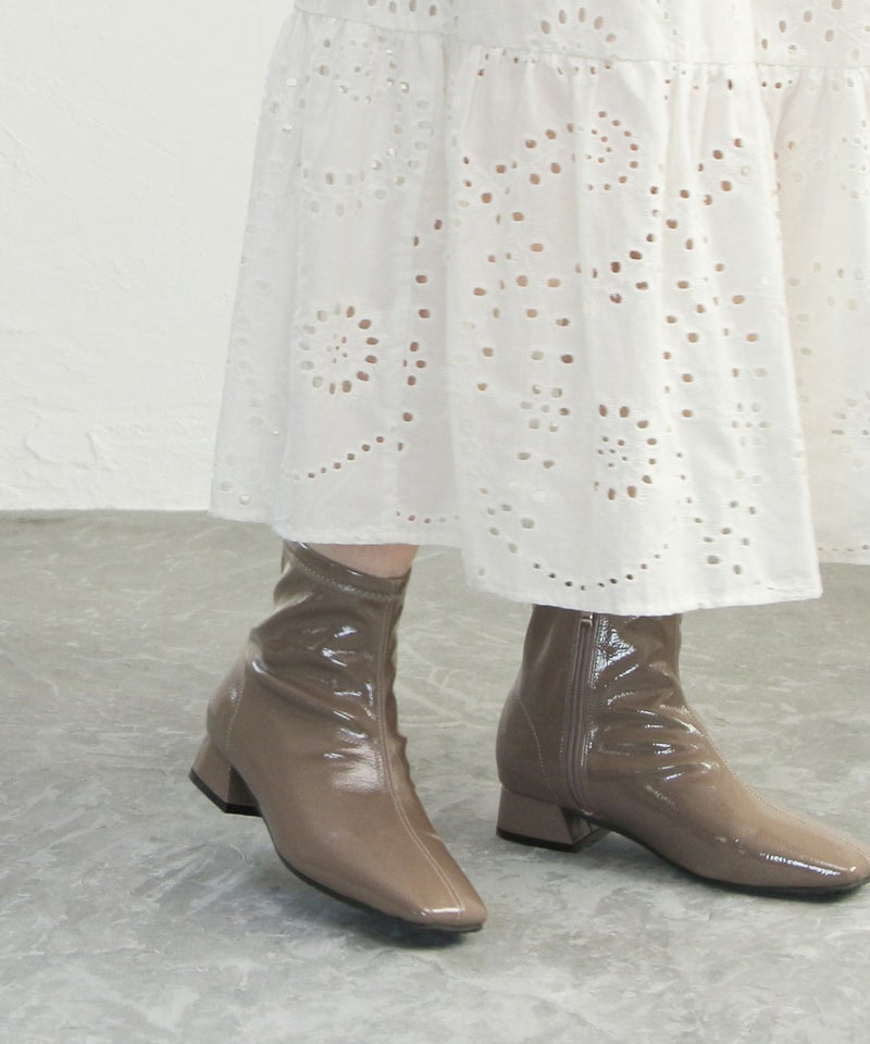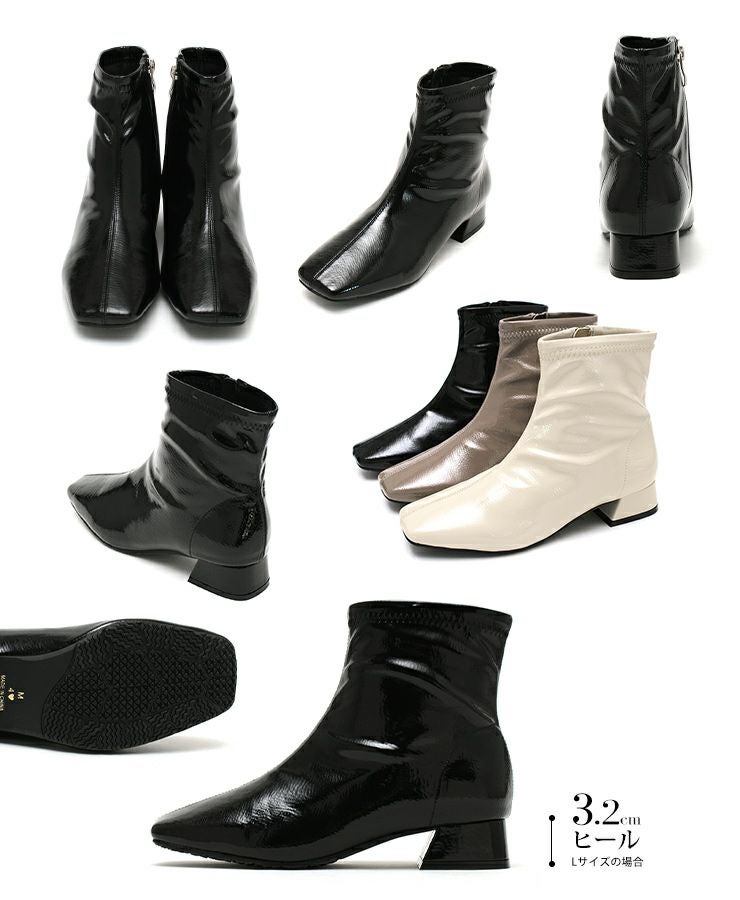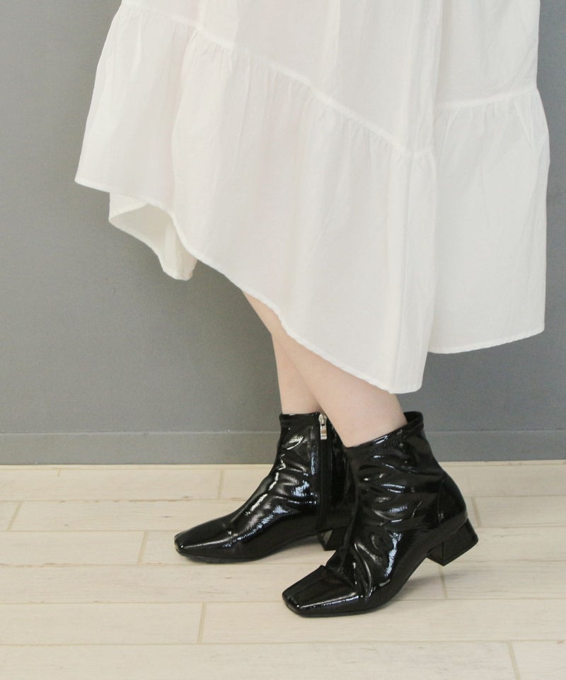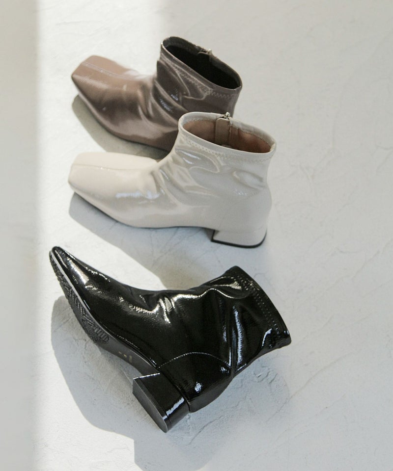 素材は柔らかいエナメル素材を使用、足に優しくフィットし雨の日じゃなくてもストレッチブーツとしてオシャレに履いていただけます。