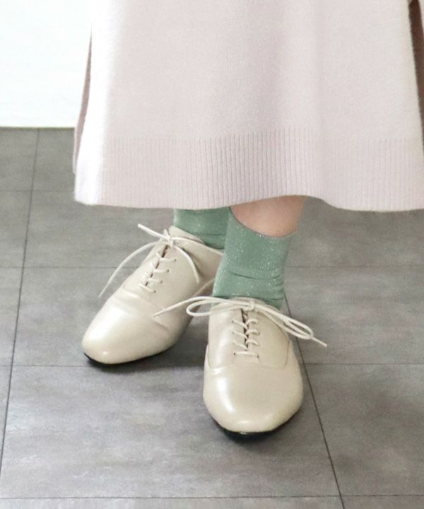 【4E幅広・大きいサイズ】スクエアトゥフラットレースアップパンプス ▲返品不可