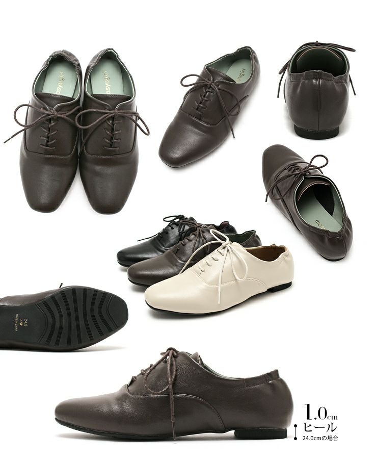 4. 【4E幅広・大きいサイズ】スクエアトゥフラットレースアップパンプス ▲返品不可