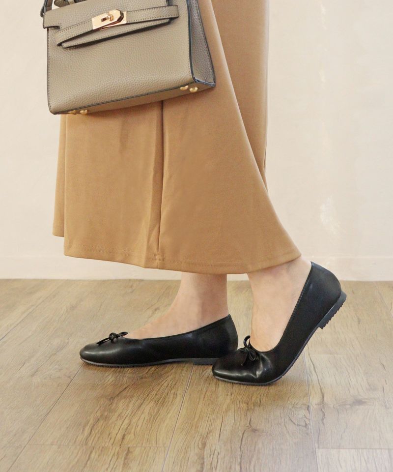 4. 【4E幅広・大きいサイズ】ラウンドトゥリボン付きフラットバレエシューズ ▲返品不可