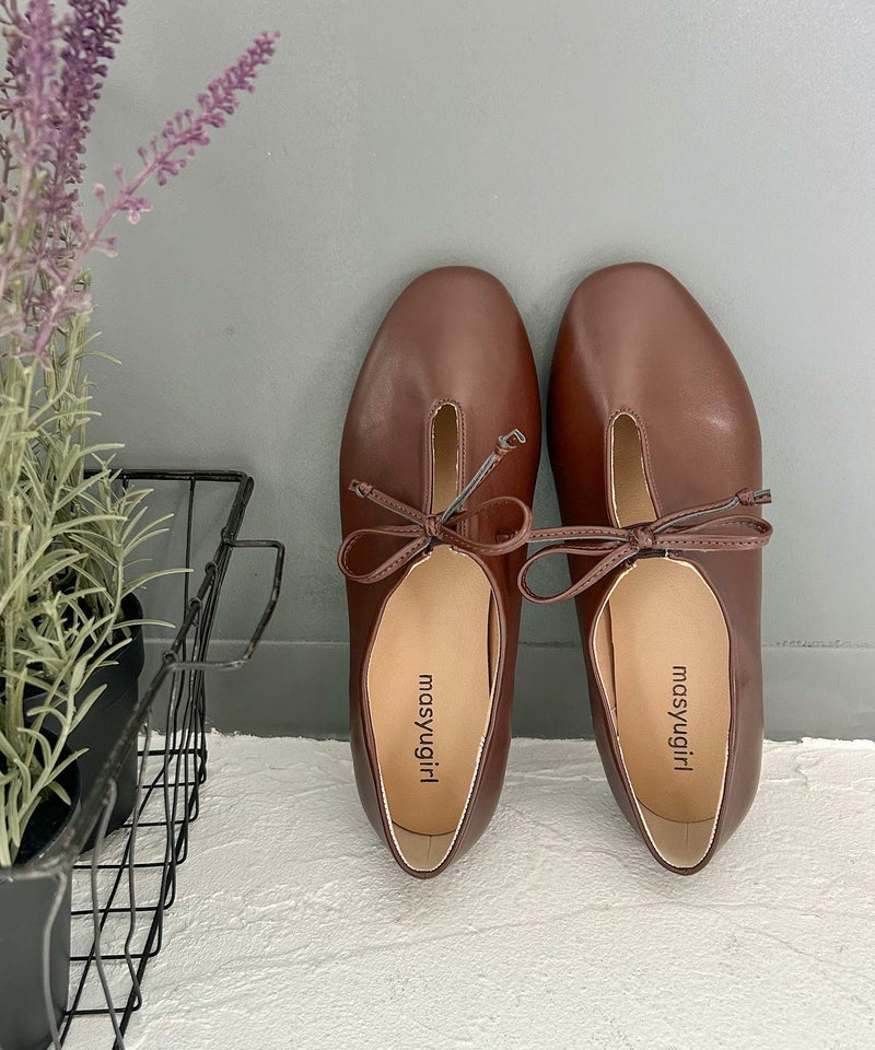 【4E幅広・大きいサイズ】 ふかふかインソール/リボン付きスリットデザインのぺたんこフラットシューズ