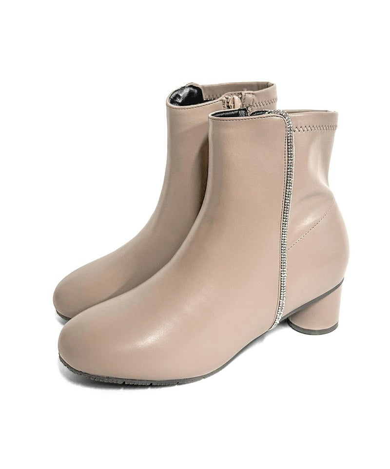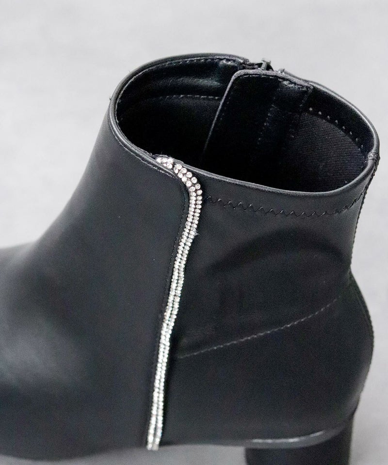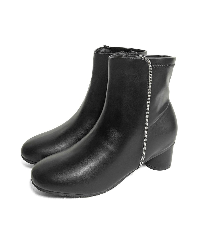 【4E幅広・大きいサイズ】 ラインストーン付き ショートブーツ