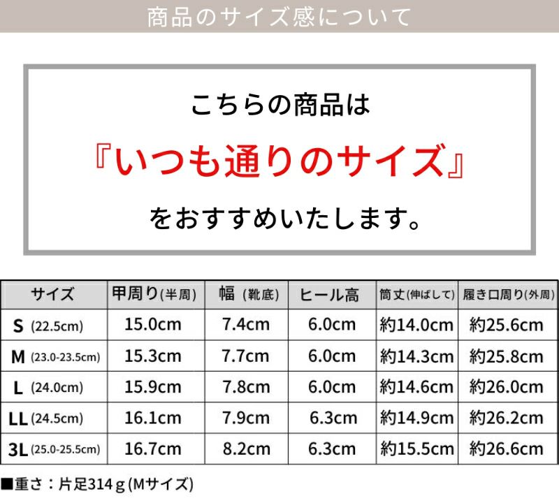 サイズ 甲周り(半周) 幅(靴底) ヒール高 筒丈(伸ばして) 履き口周り(外周)