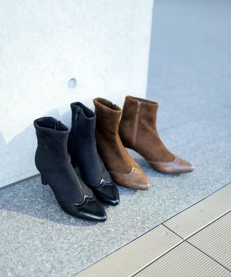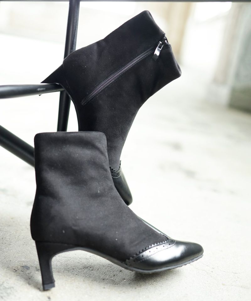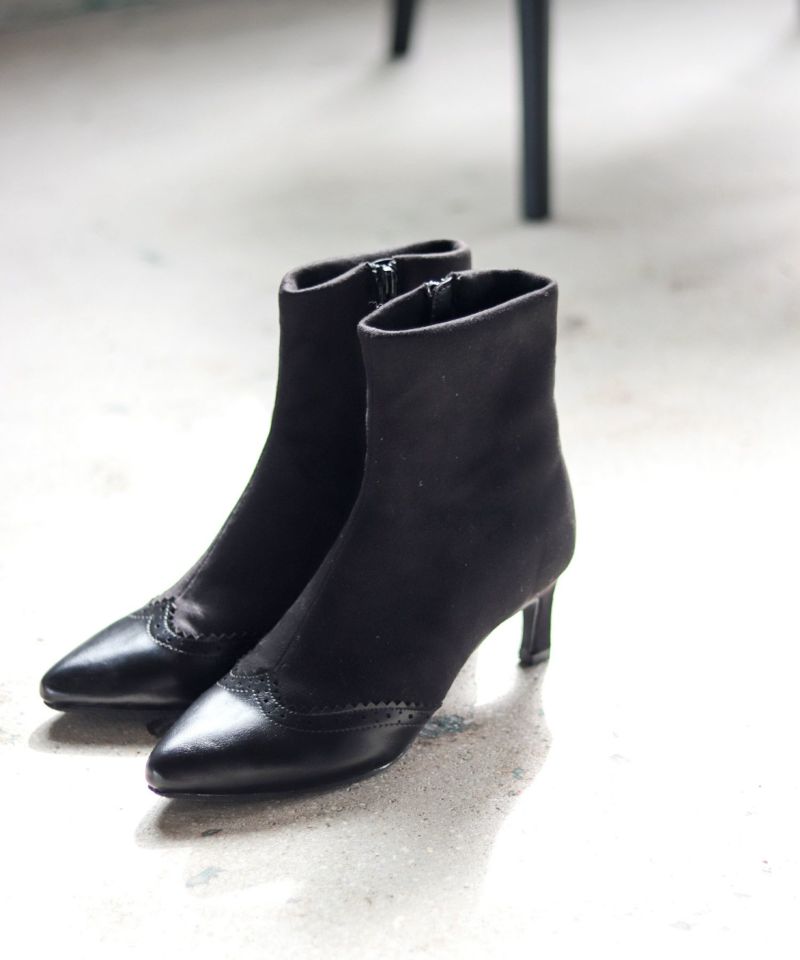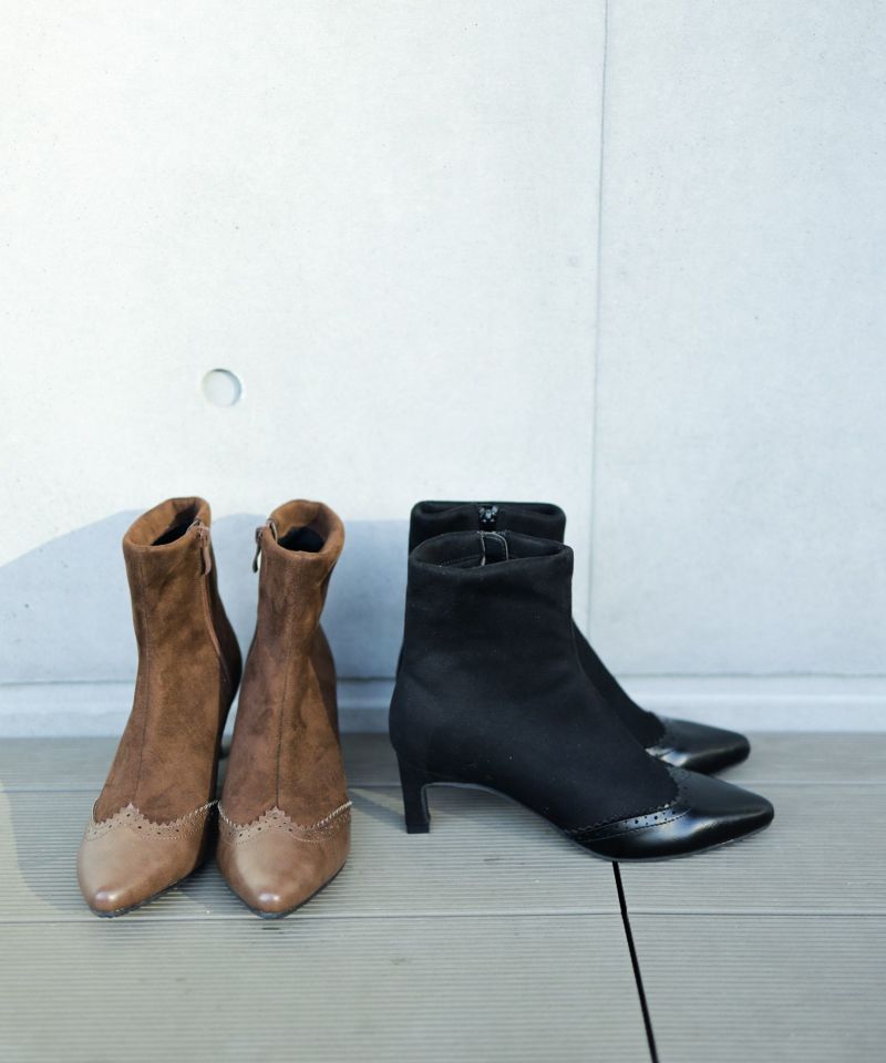 4. ウイングチップストレッチストレートヒールショートブーツ▲返品不可
