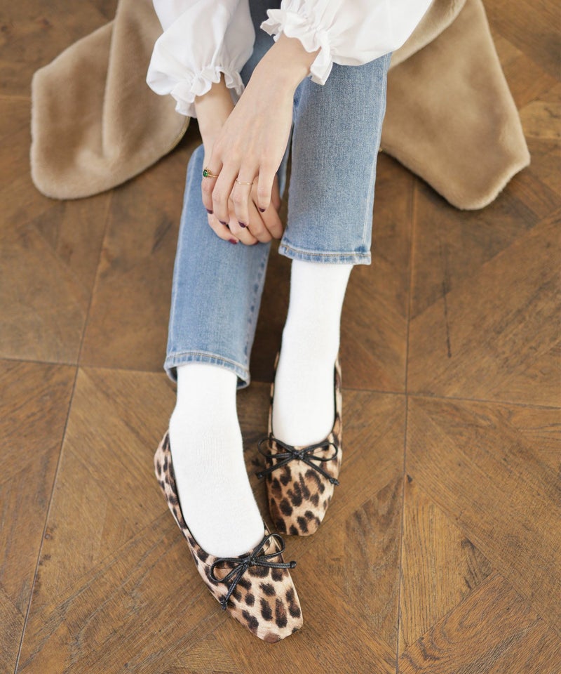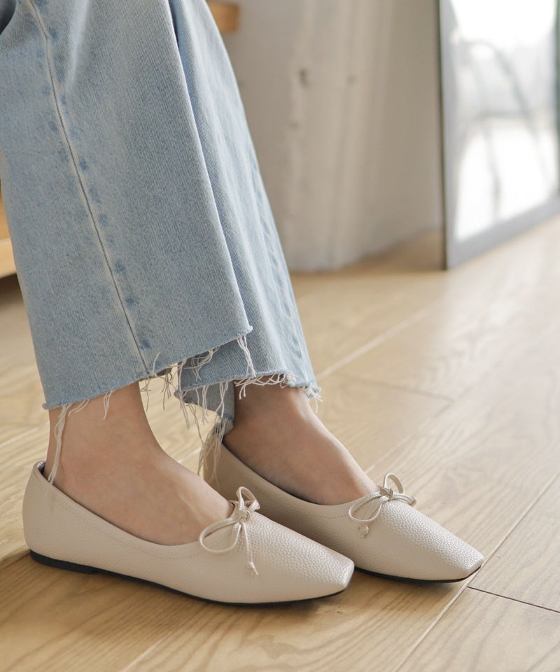 4. やわらかスムース素材のスクエアトゥ甲深バレエシューズ 一部4月上旬入荷予定
