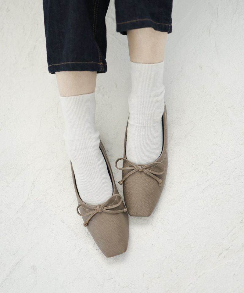 4. やわらかスムース素材のスクエアトゥ甲深バレエシューズ 一部10月末頃入荷予定