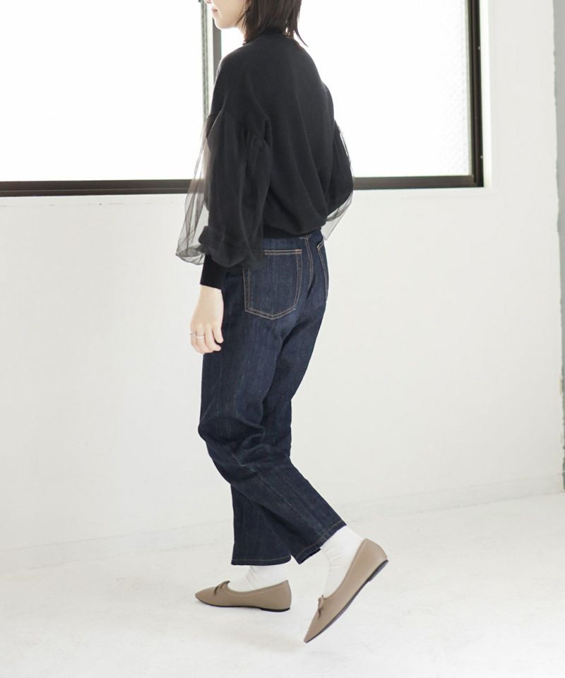 端正な甲のボリューム感がどこかモードな足元を演出します。