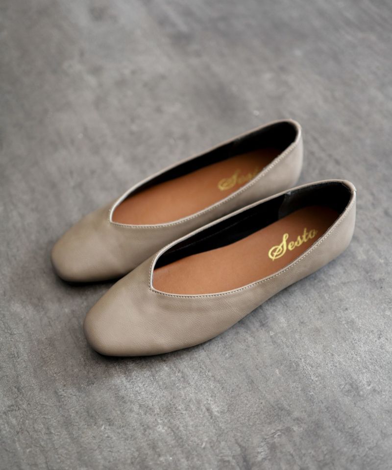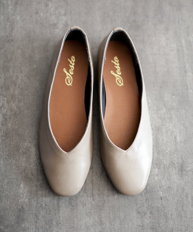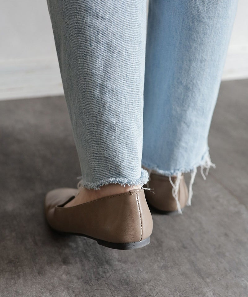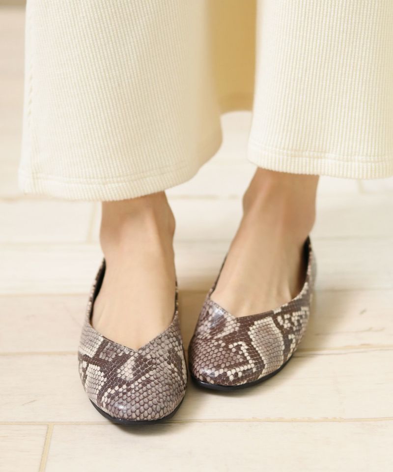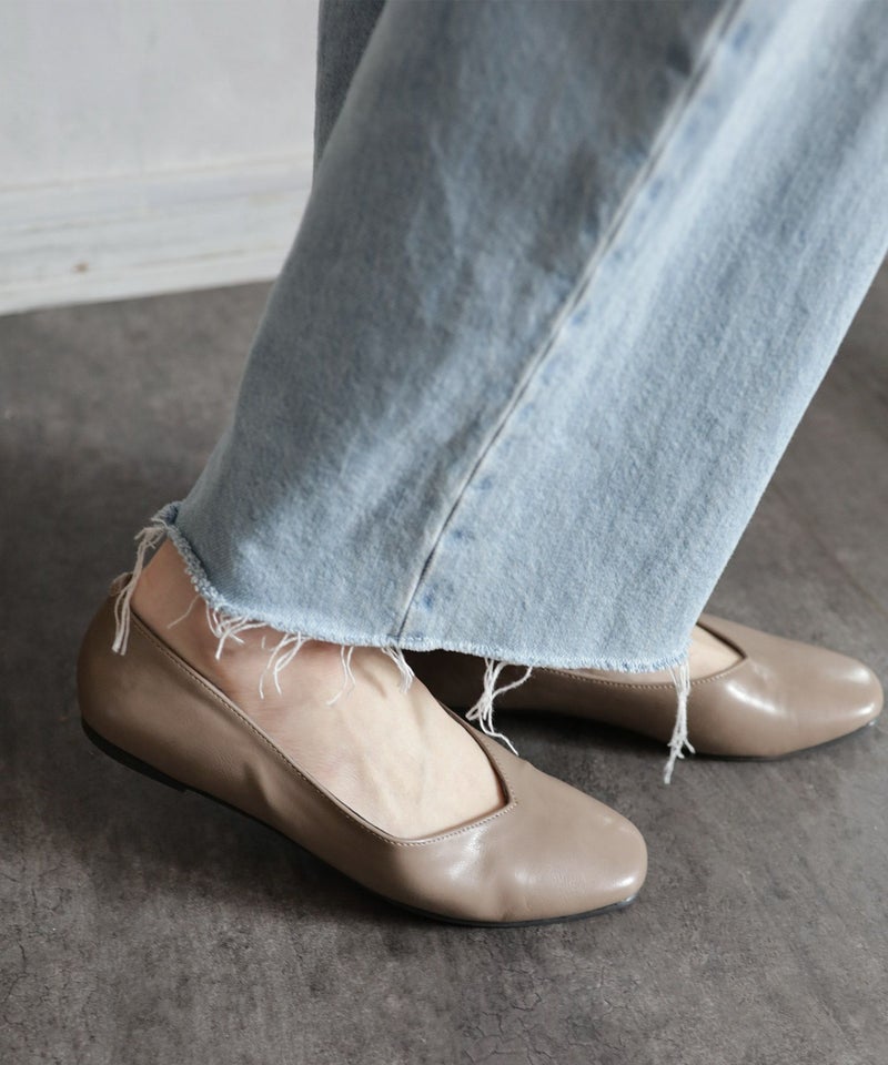 商品説明モードな印象で大人女子に人気のVカットの履き口がポイントのフラットシューズ。