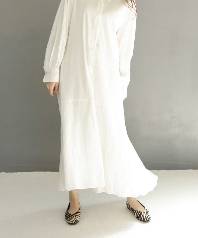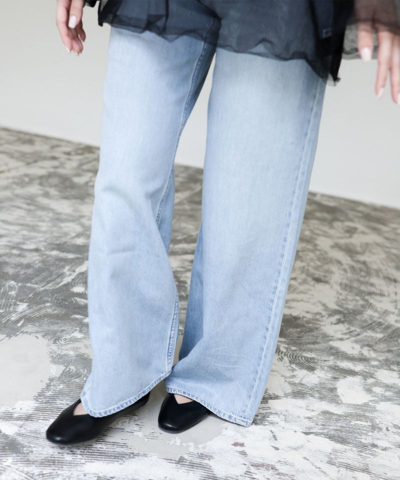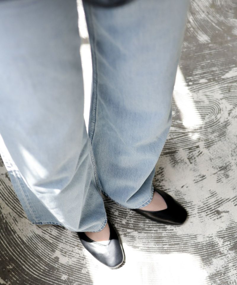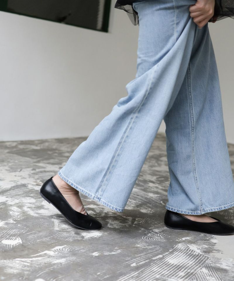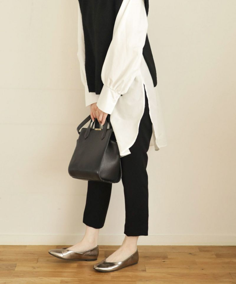 フラットシューズでも足がきれいに見えて大人っぽい印象に。