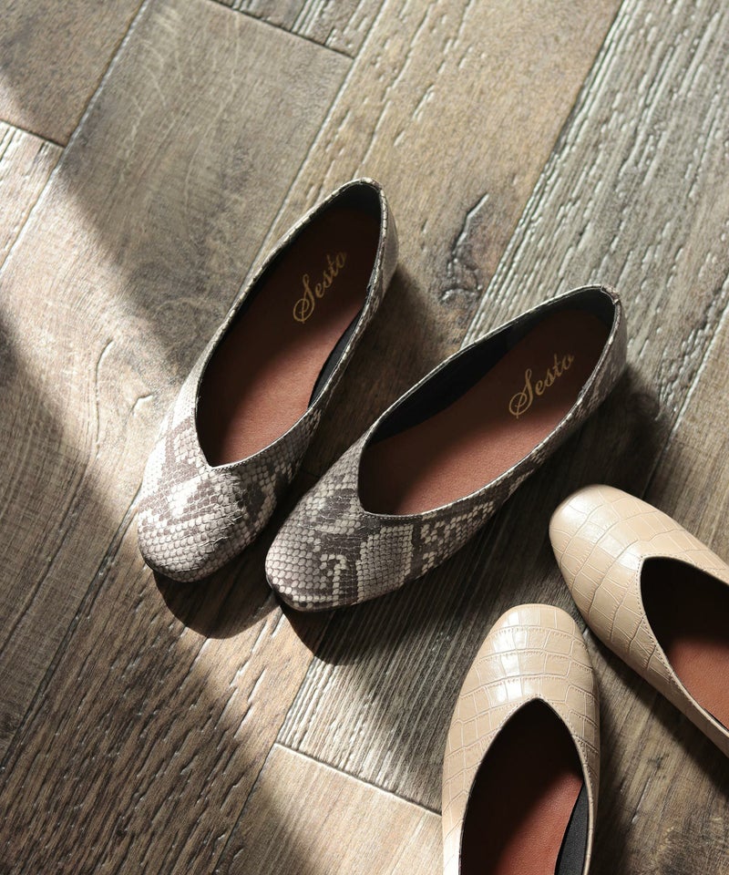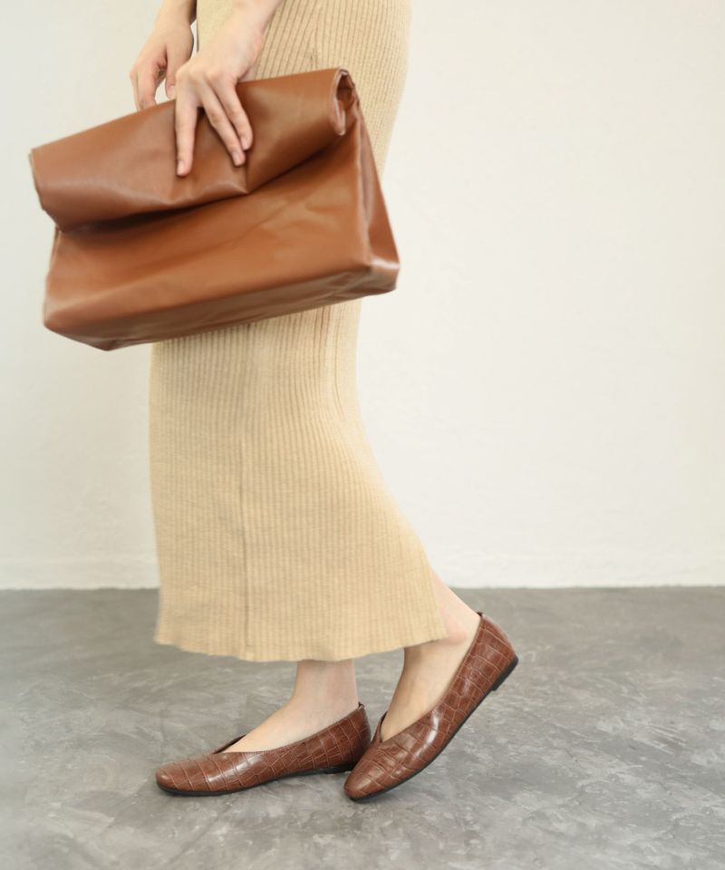 ほっそりと華奢に見えるシルエットに、柔らかな風合いの素材にこだわった履きやすいデイリーシューズです。本革のようなつやっぽい上品な質感で高級感があります。