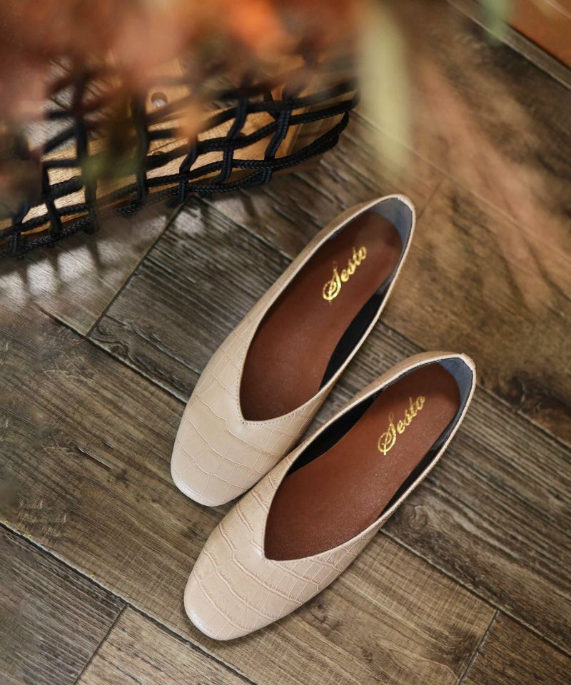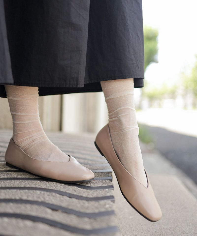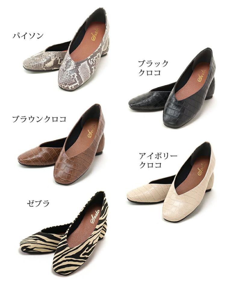 4. スクエアトゥフラットシューズVカットバブーシュパンプス