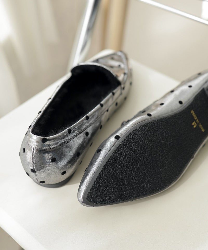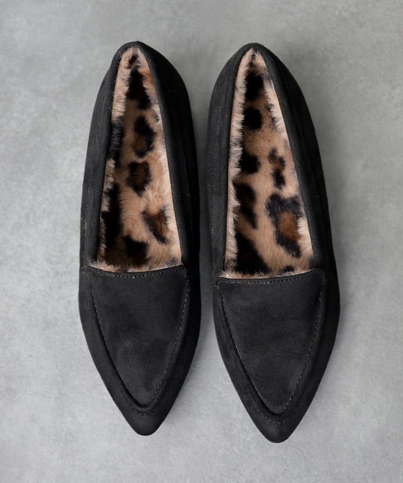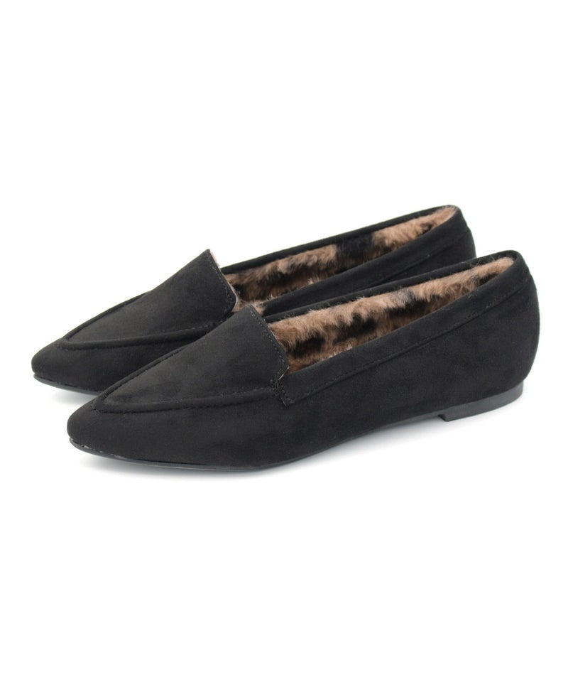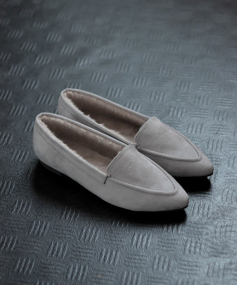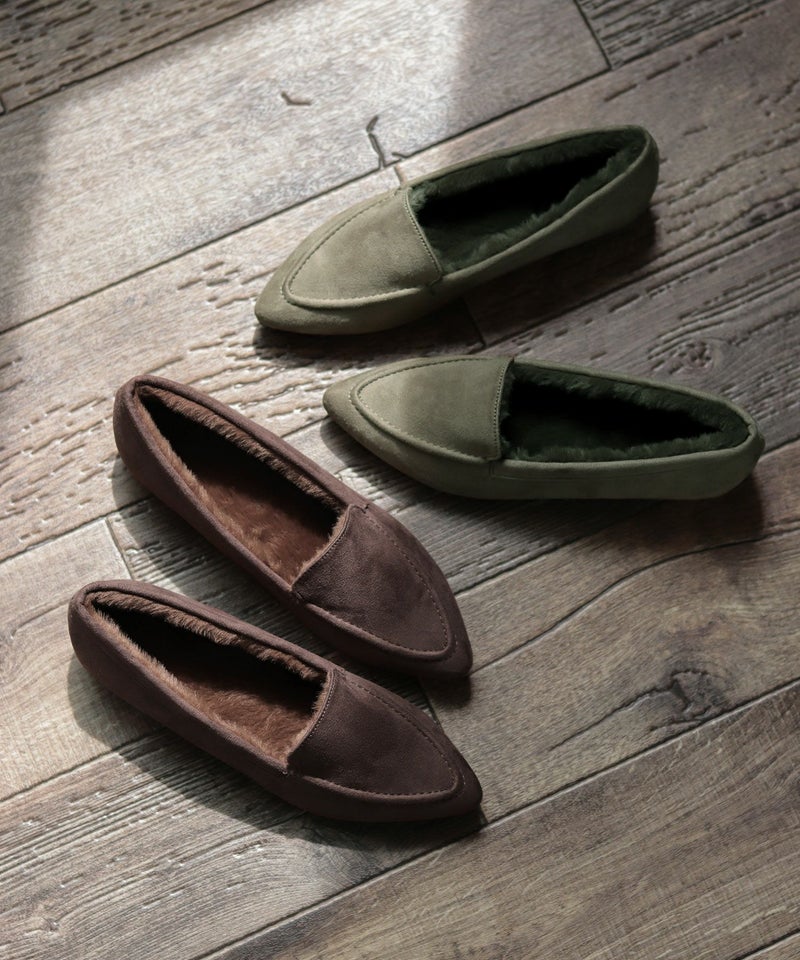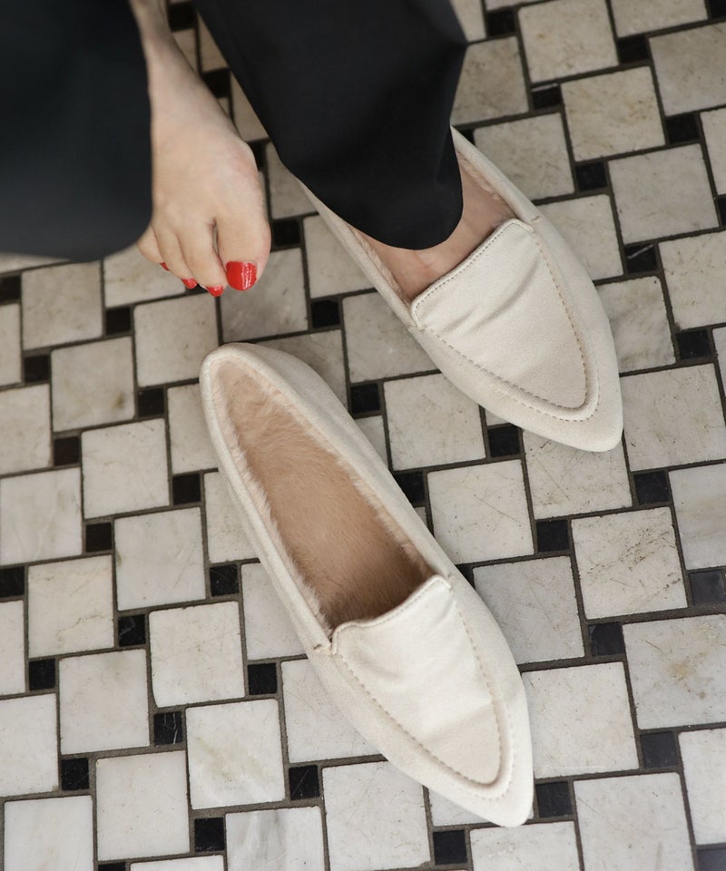 4. インナーファーのポインテッドトゥすっきり見えモカシンフラットシューズパンプス