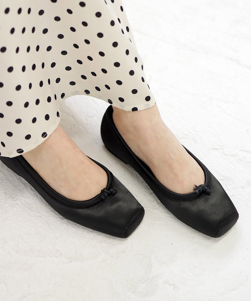 4. グロッシーサテンのスクエアトゥバレエシューズパンプス 一部5月上旬入荷予定