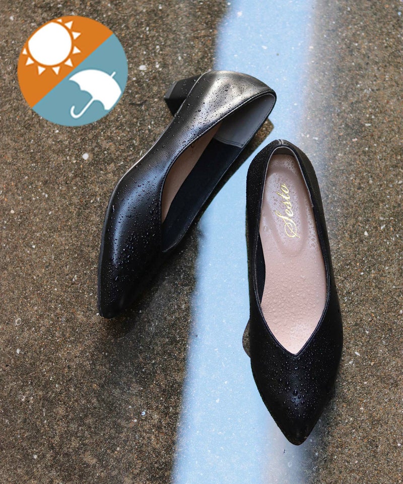 生活防水!晴雨兼用Vカットローヒールポインテッドトゥパンプス/レインシューズ/レインパンプス 一部3月下旬入荷予定