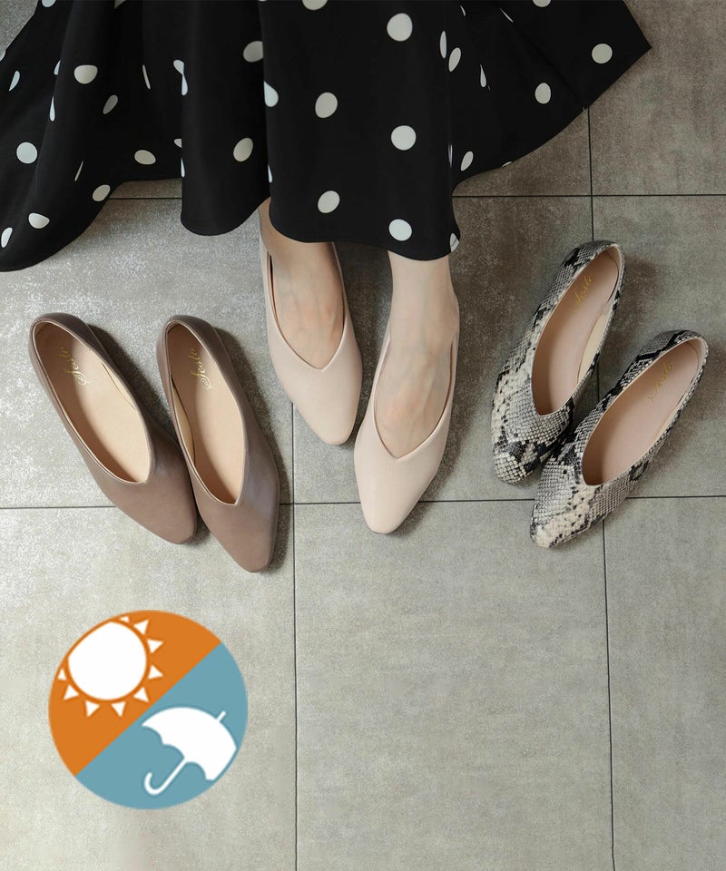 生活防水対応Vカットフラットレインパンプス/オールウェザーパンプス/晴雨兼用 一部4月中旬入荷予定