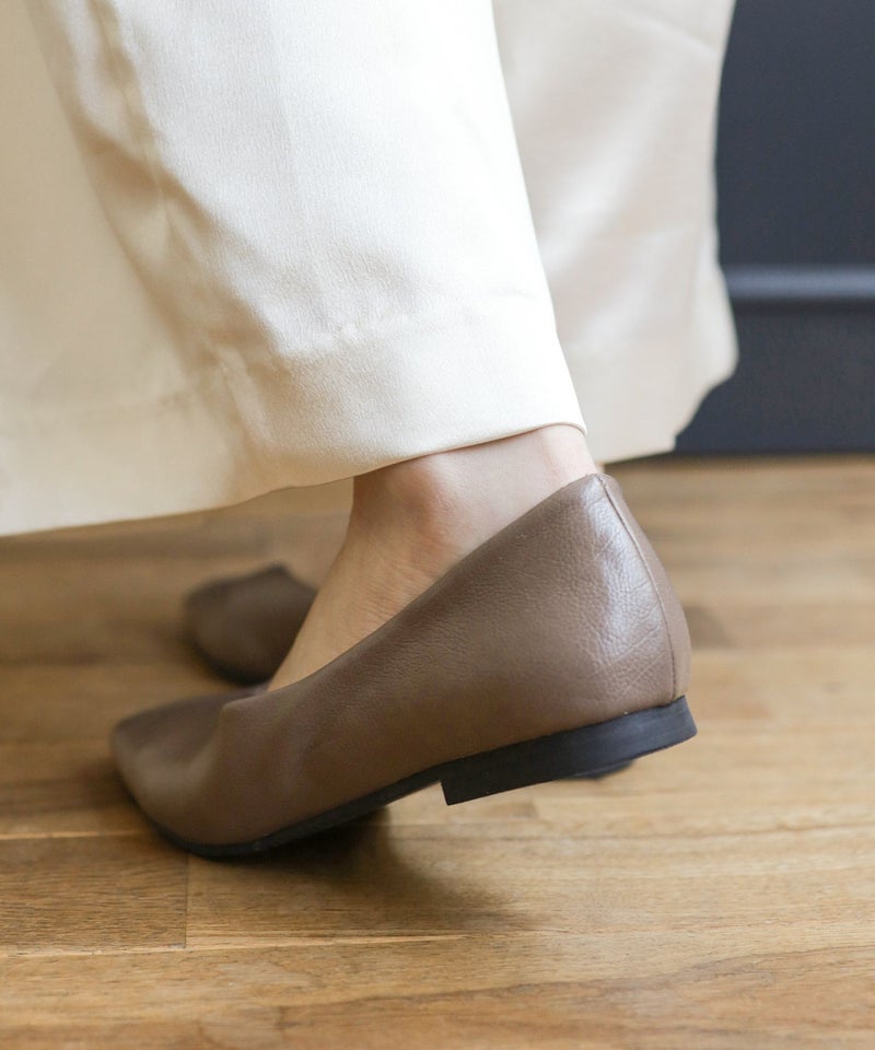 セミスクエアトゥでポインテッドトゥに比べつま先にゆとりがあり楽チン。