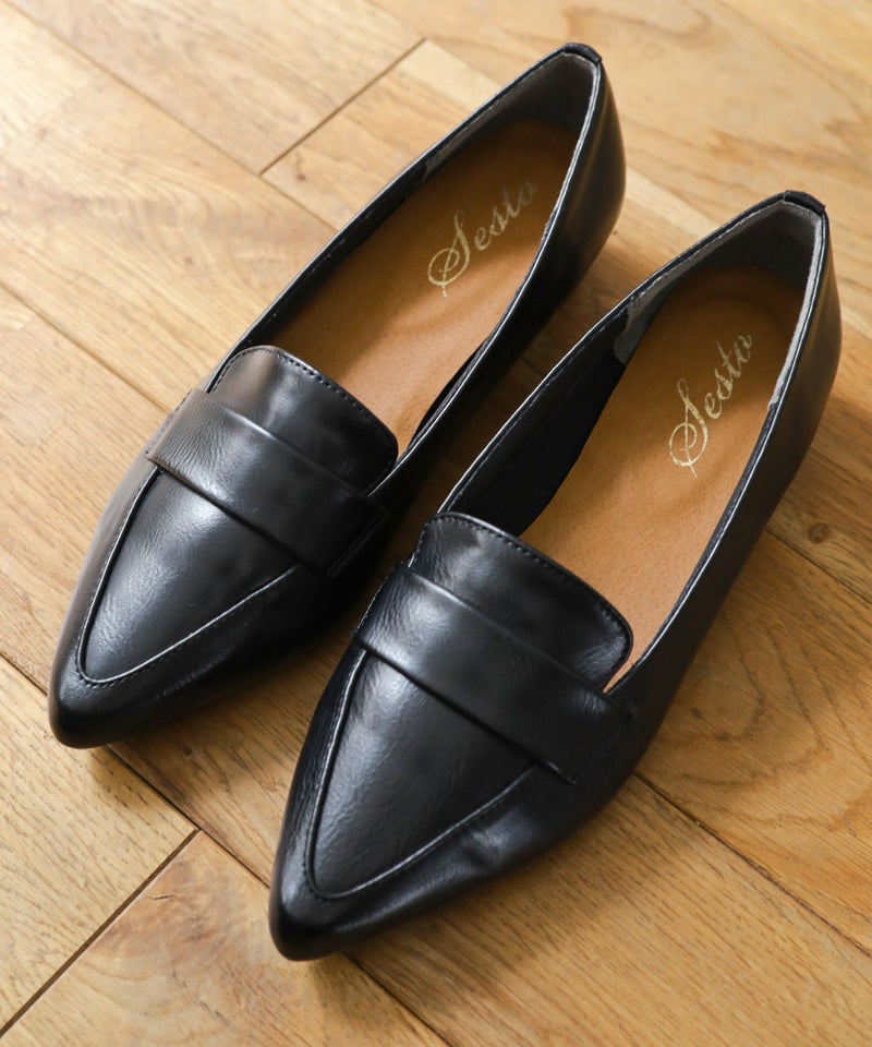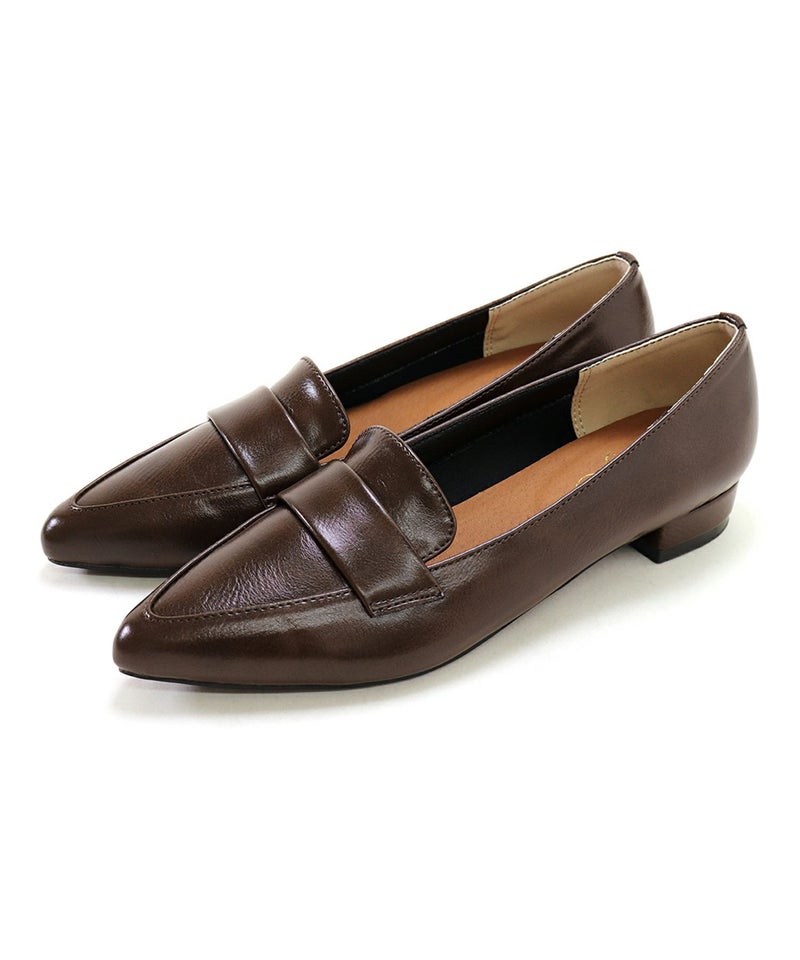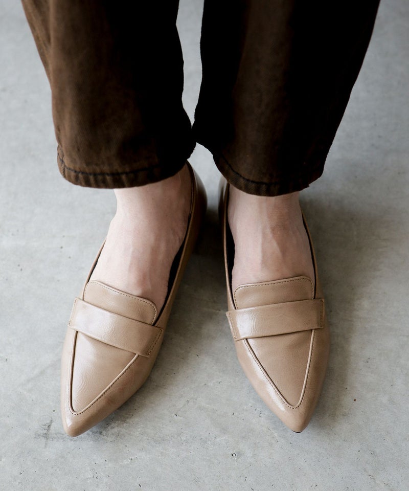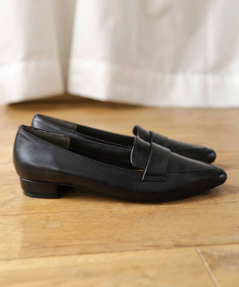 ポインテッドトゥローヒールローファーパンプス