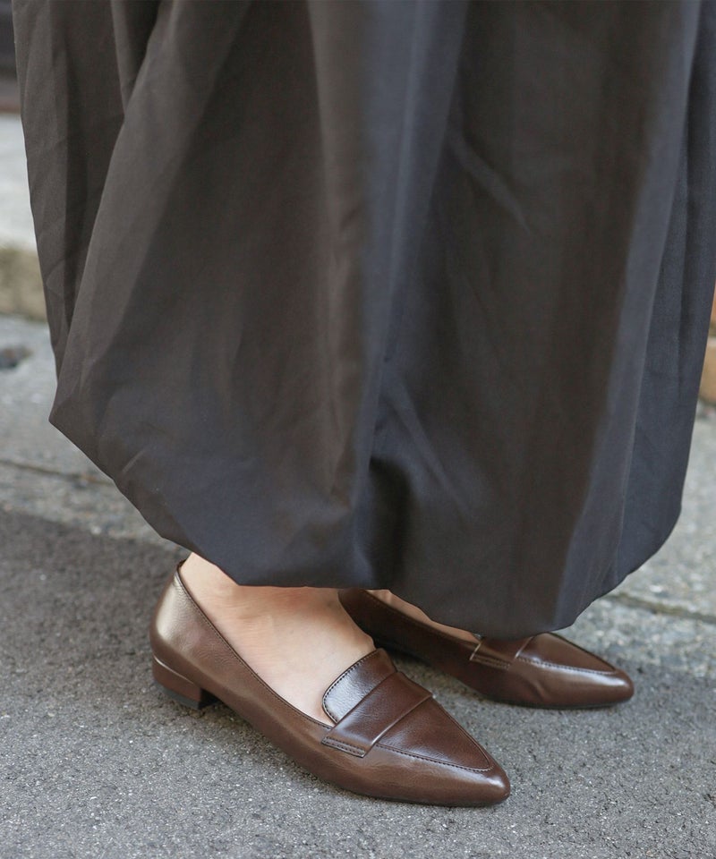 装飾を省いたベルトだけのフォーマルでクラシックなローファースタイルに、ポインテッドトゥ・スッキリとしたシルエットなど、足元を美しく見せるパンプスの良さを融合した一足。