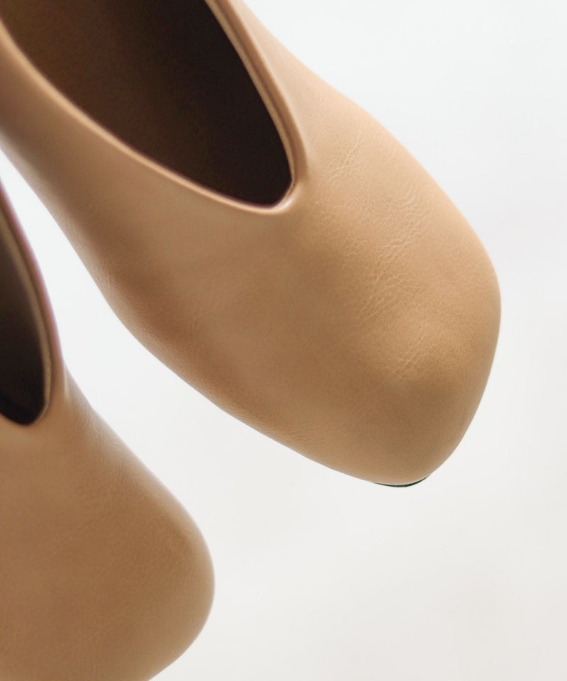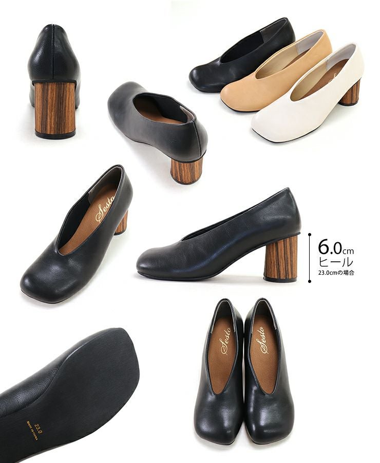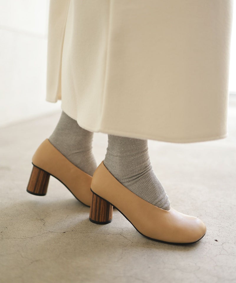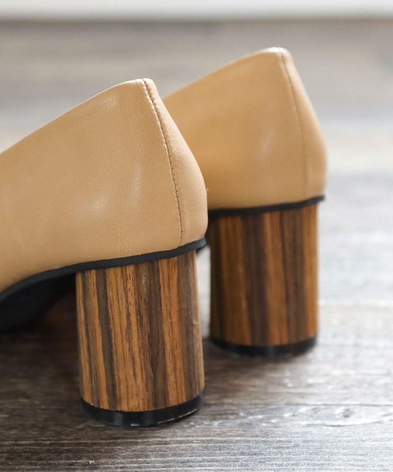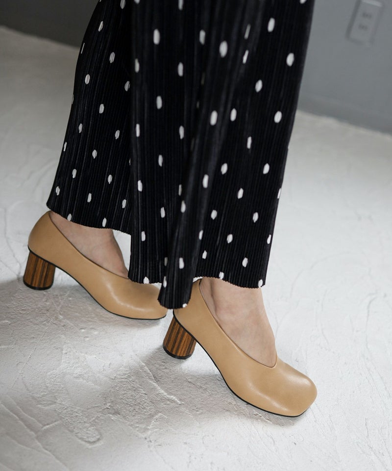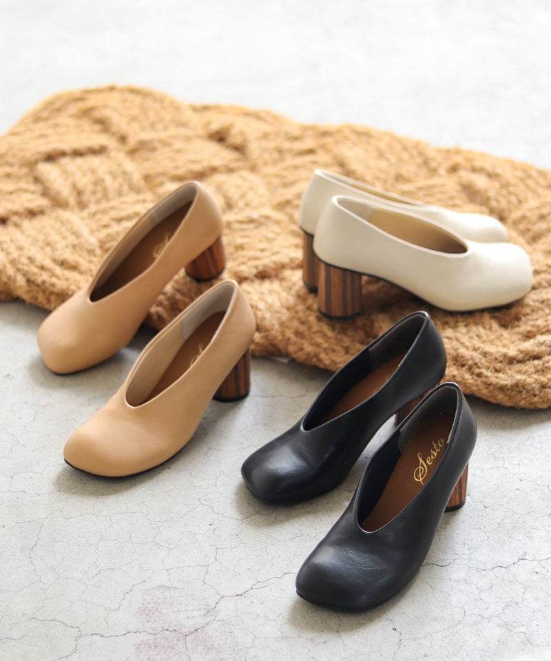 ウッド巻きヒールのアシンメトリートゥUカットパンプス 【公式ショップ・ZOZOTOWN・amazon限定販売アイテム】▲返品交換不可