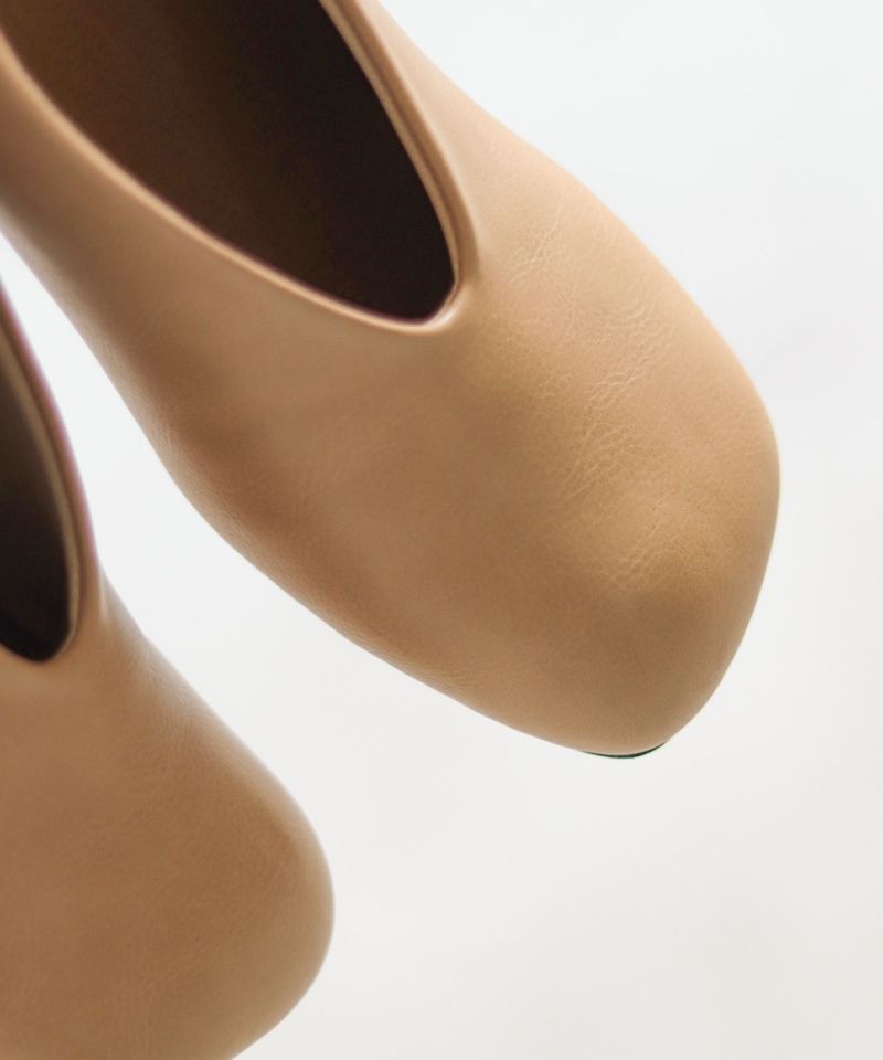 ウッド巻きヒールのアシンメトリートゥUカットパンプス 【公式ショップ・ZOZOTOWN・amazon限定販売アイテム】▲返品不可