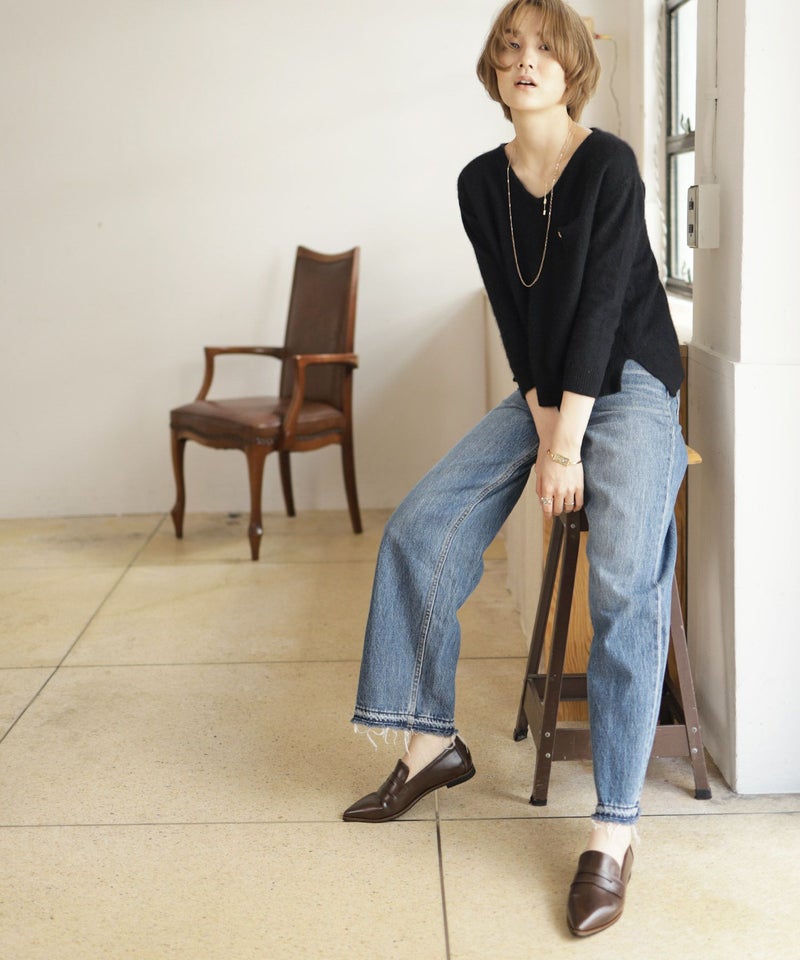 レディな印象のポインテッドトゥとローファーのデザインが好バランスで、大人なこなれ感を演出してくれます。