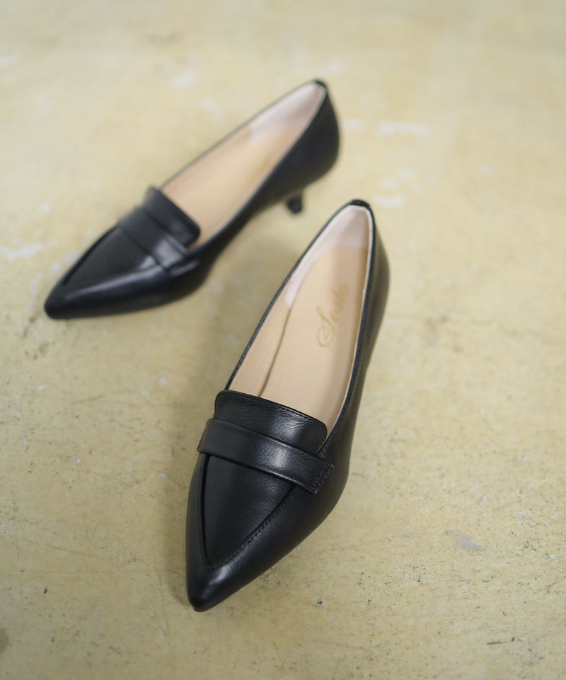 ミドルヒールポインテッドトゥローファーパンプス