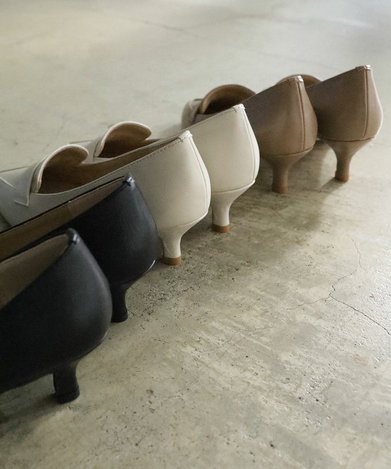 4. ミドルヒールポインテッドトゥローファーパンプス