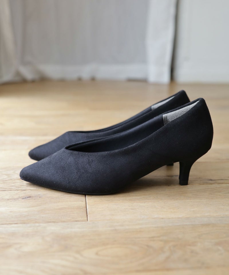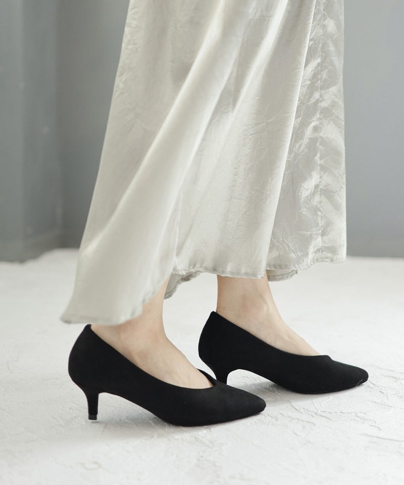 削れないかかとゴム&高機能クッションの美脚ローヒールパンプス