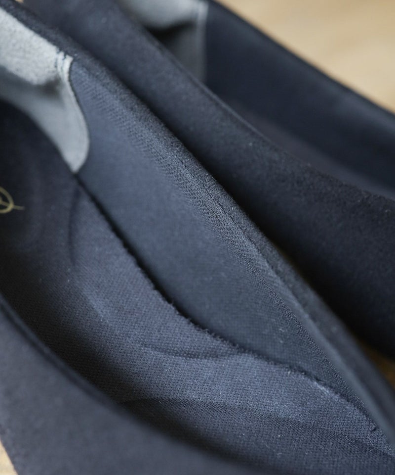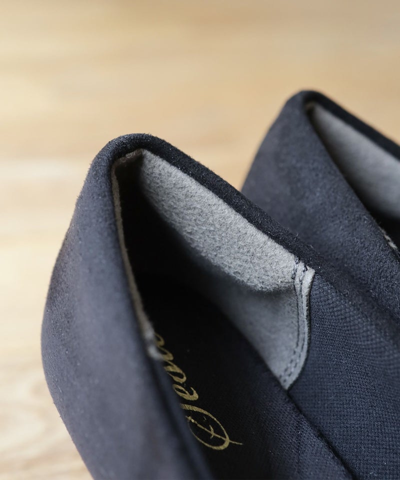 シャープなシルエットはそのままに先端部分から厚みをつけて中の体積をアップさせることによって窮屈感が軽減されたポインテッドトゥを実現しました。