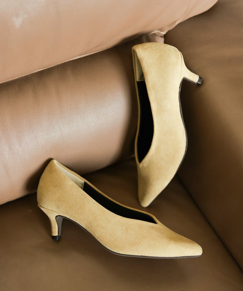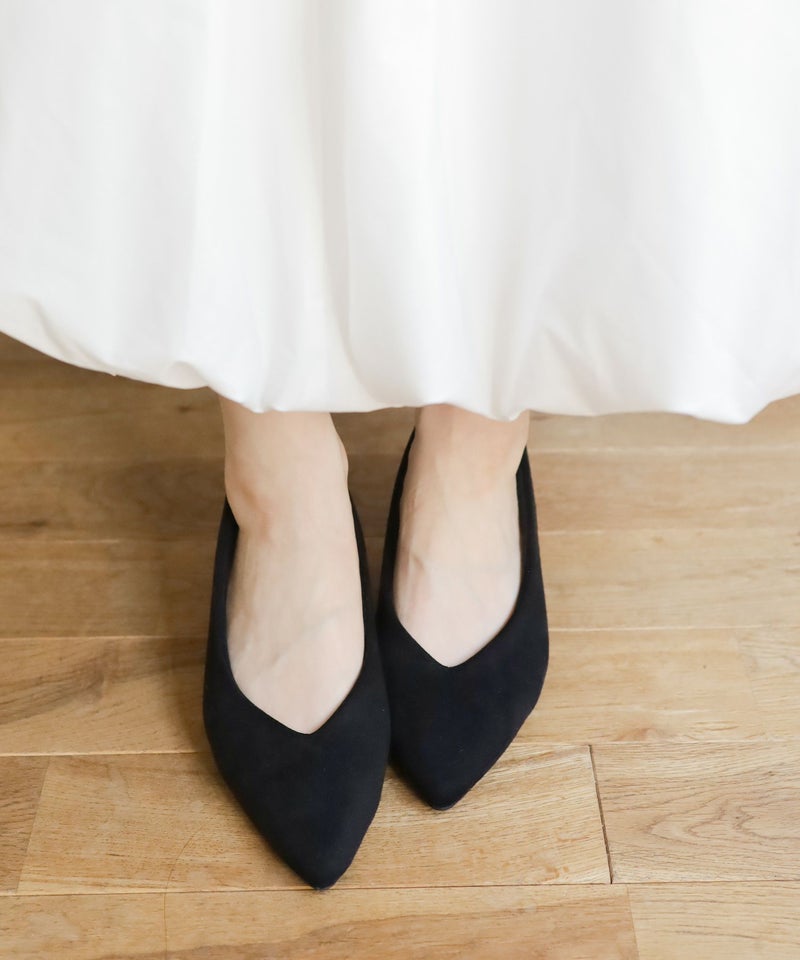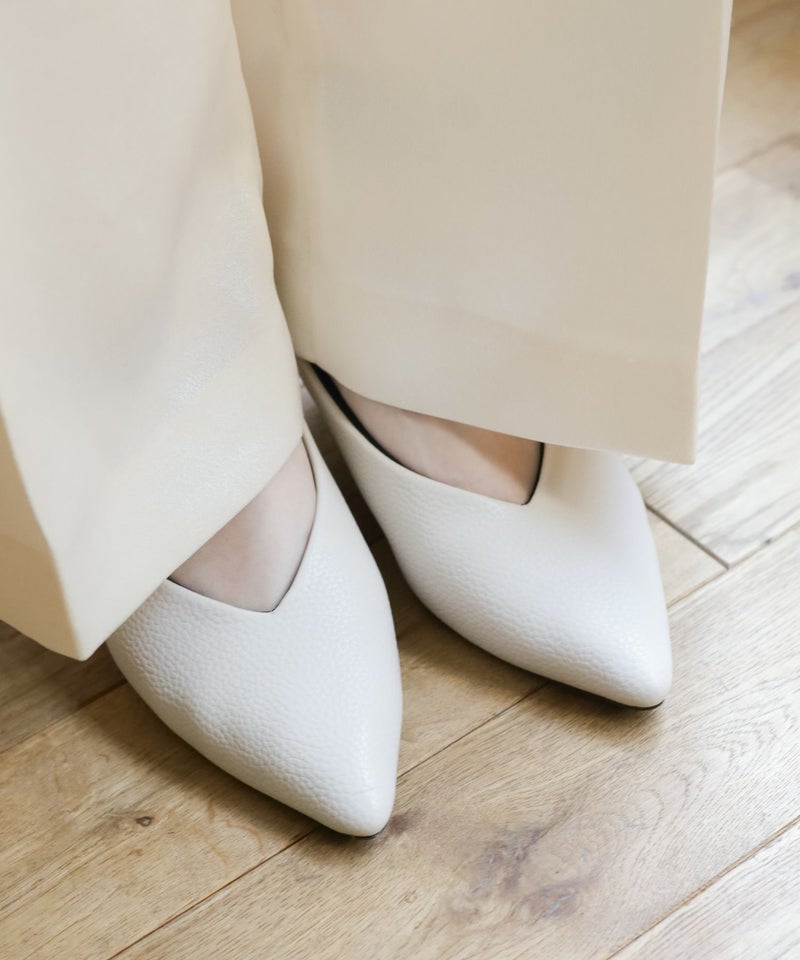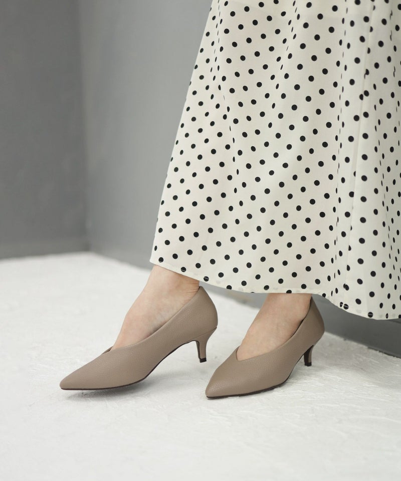また履き口をVカットデザインにすることで、ヒールが低くても足が綺麗にスッキリ見える美シルエットを叶えました。