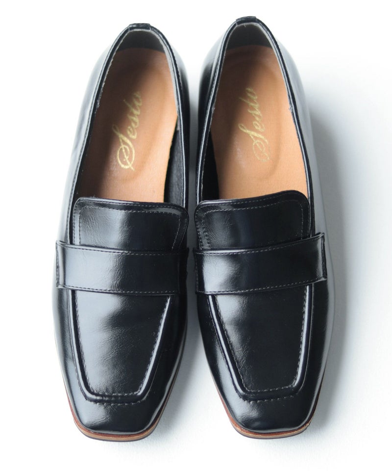 スリムスクエアローヒールローファーパンプス▲返品交換不可