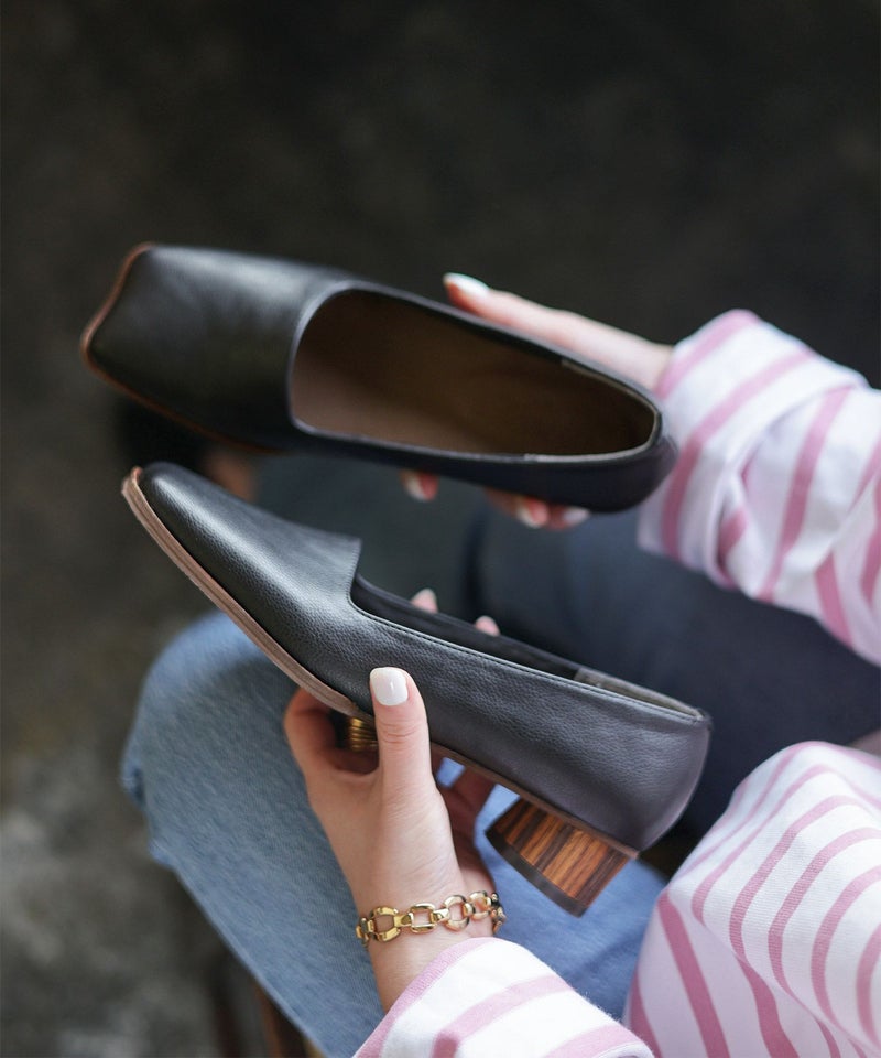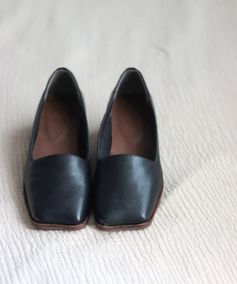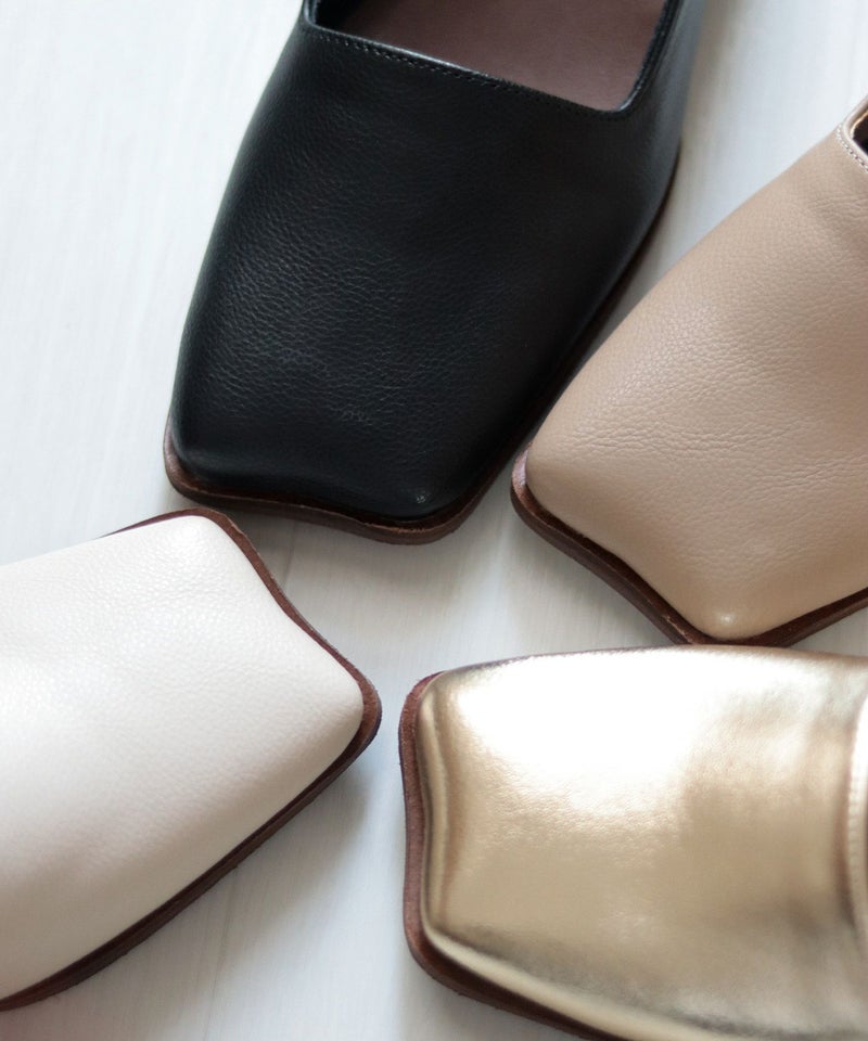履き口のカットも広めのスクエアにデザインし、今どきのモードな足元を演出してくれます。