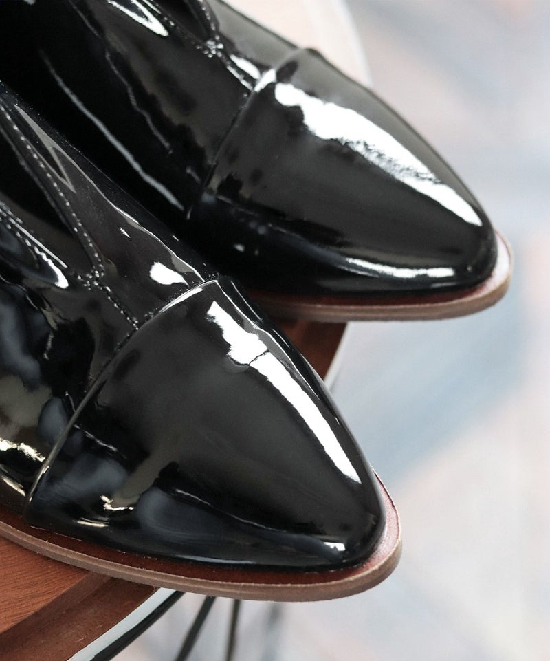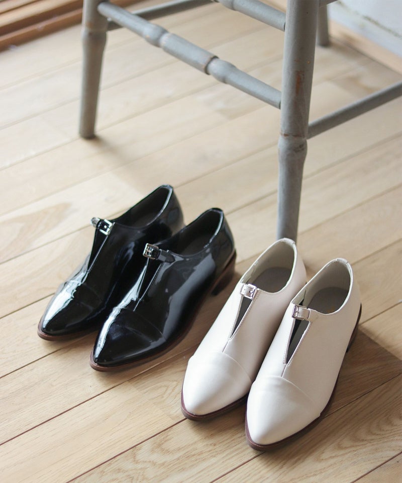 Vカットのデザインは足をすっきりと見せてくれるので、すこしマニッシュなデザインのシューズであってもエレガントにお召し頂けます。つま先の形はすっきりとしたアーモンドトゥで仕上げ、スタイリッシュな要素をプラス。
