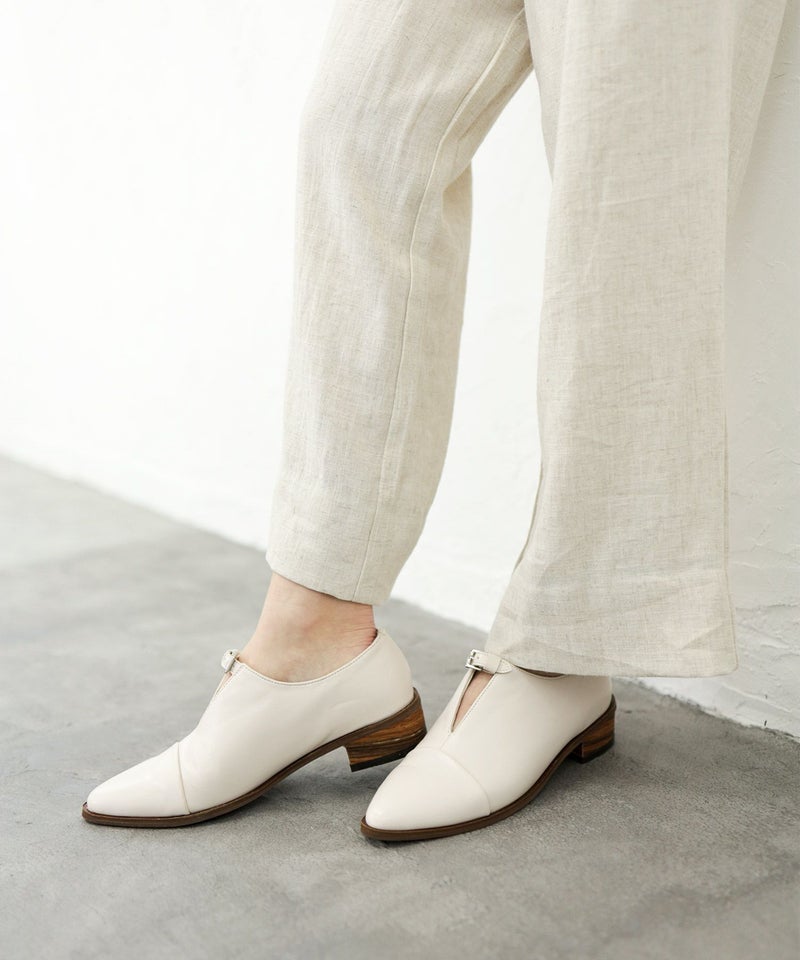 ブラックはとことんシックでハンサムさも備えた印象、ヒールは本スタックヒールで仕上げています。足元に抜け感を演出してくれるアイボリーには、木目のヒールを添えてアクセントをプラス。どちらもぐっと洒落感を高めてくれ、きちんと感も備わる優秀な1足です。