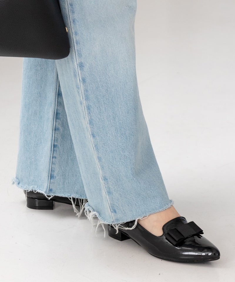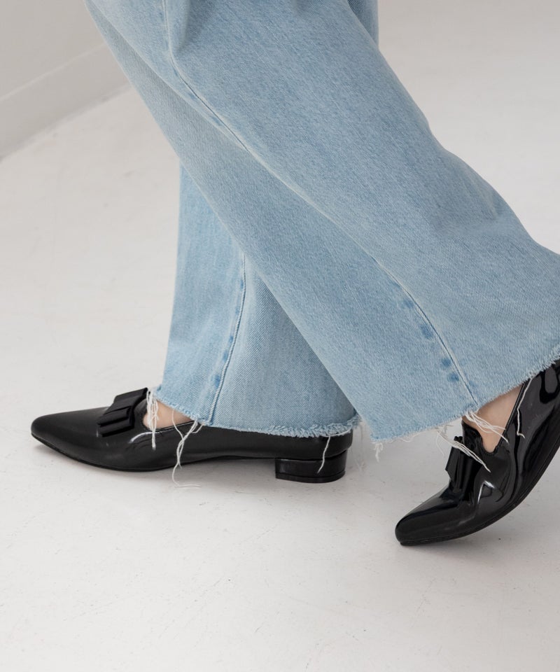 5. ポインテッドトゥローヒールリボンローファーパンプス