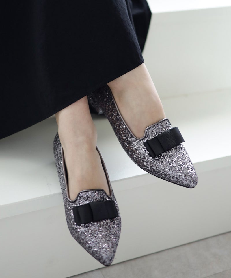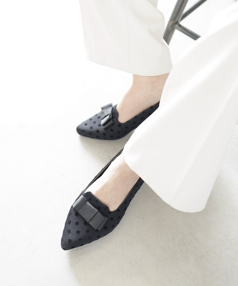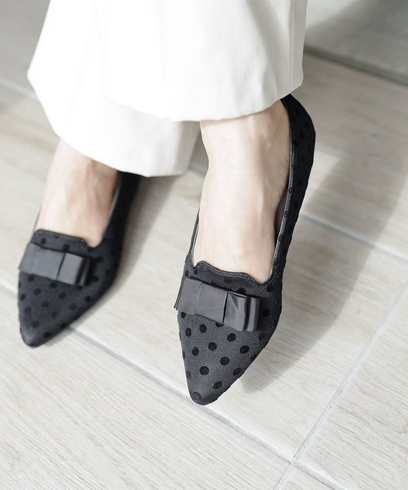 4. ポインテッドトゥローヒールリボンローファーパンプス
