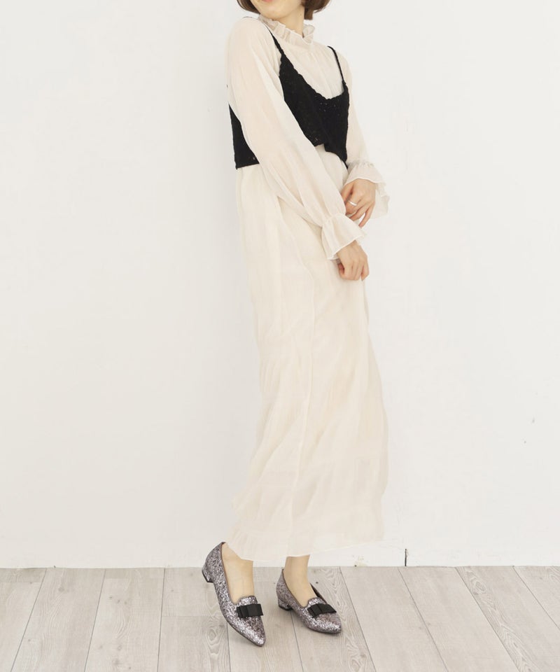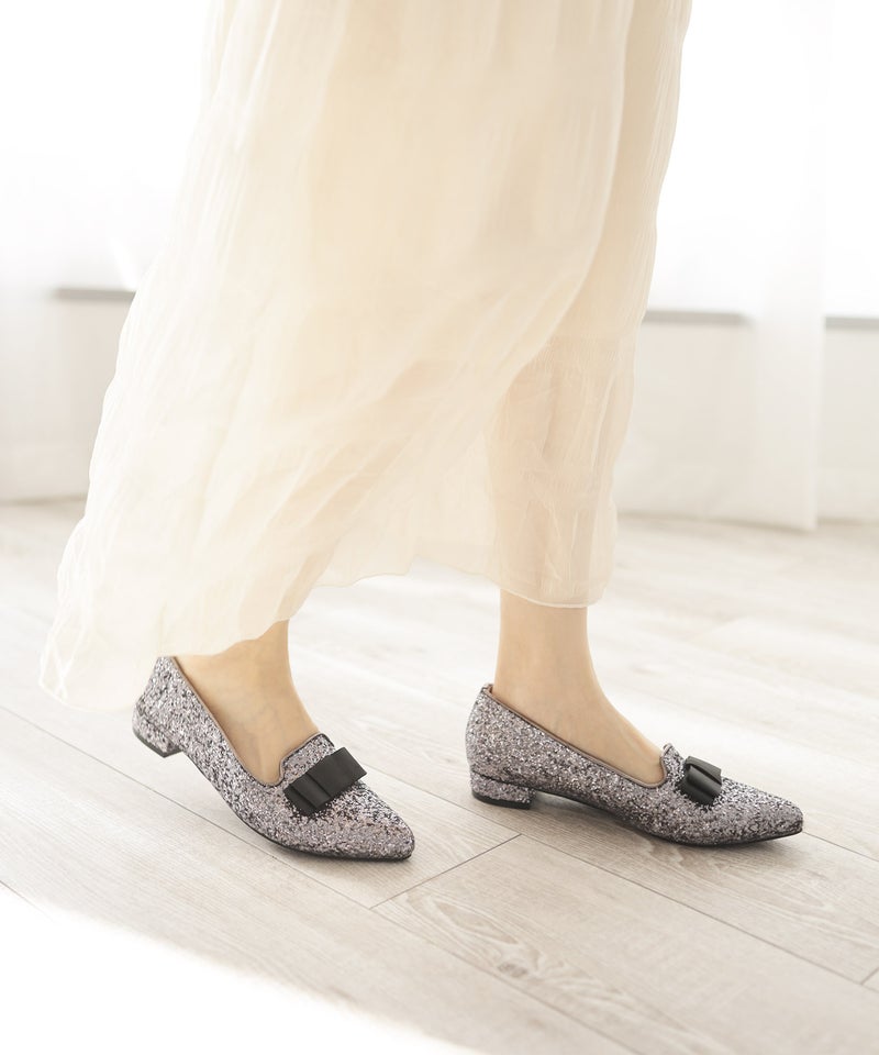 ちょこんと乗った重ねリボンが可愛らしい一足。