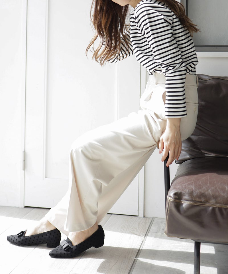 ローヒールでもしっかりスタイルアップできて、毎日履きたくなるポインテッドトゥローヒールリボンローファーパンプスの登場です。