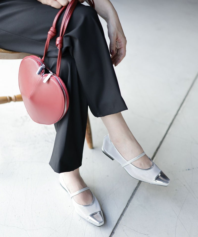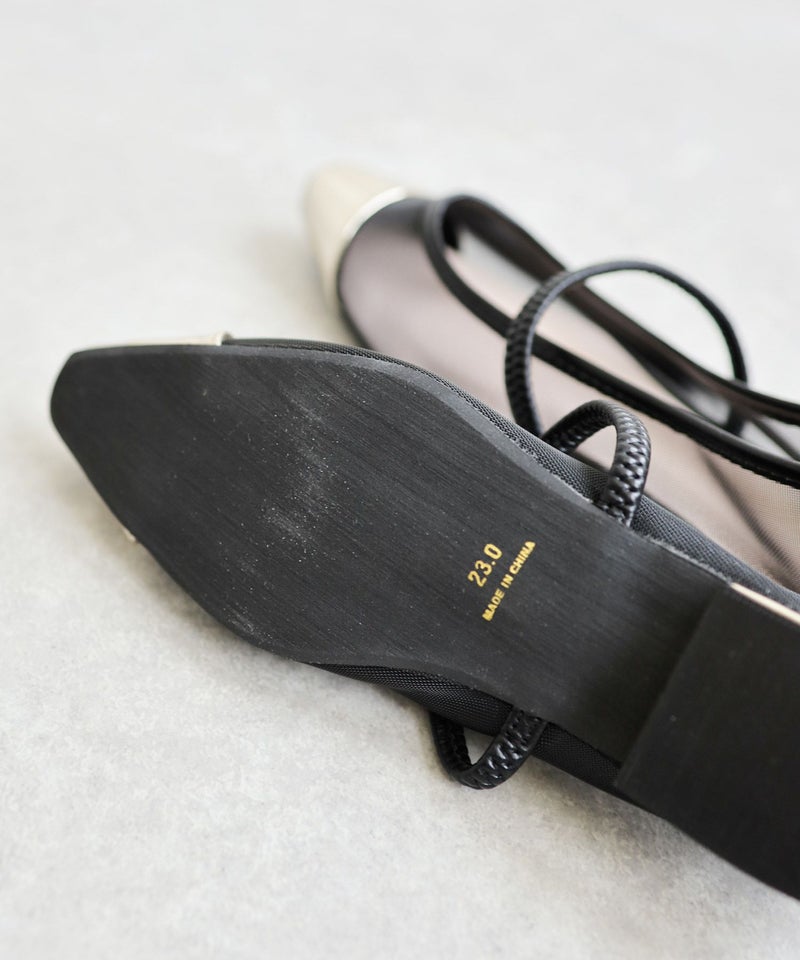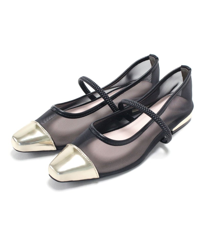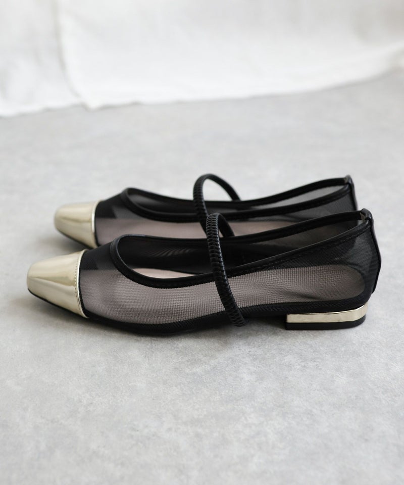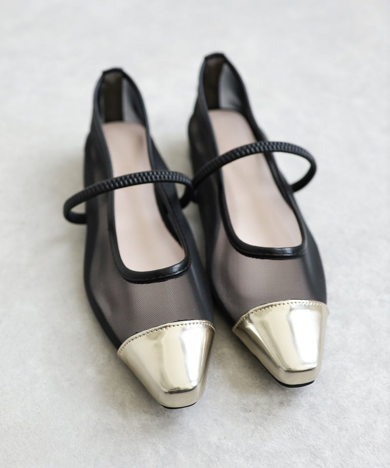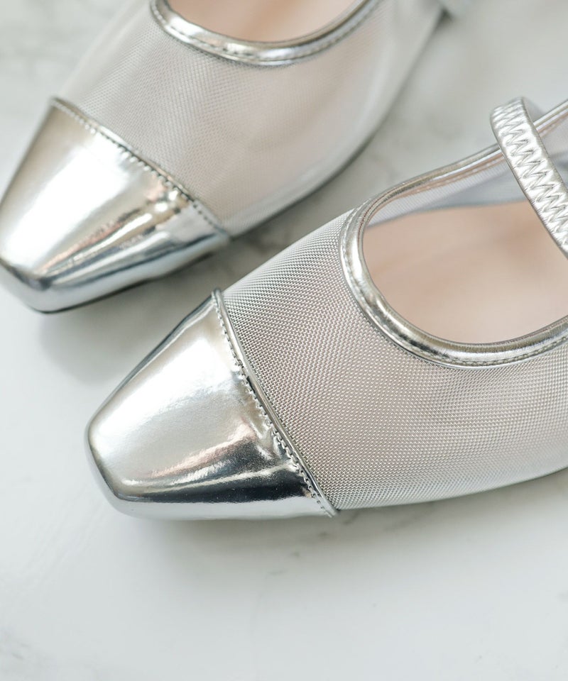きらめくメタリックなトゥと透け感メッシュ合わせが新鮮!足元から粋なお洒落が楽しめる、履くだけでシックかつ大人モードなスタイルへとランクアップしてくれる一足。