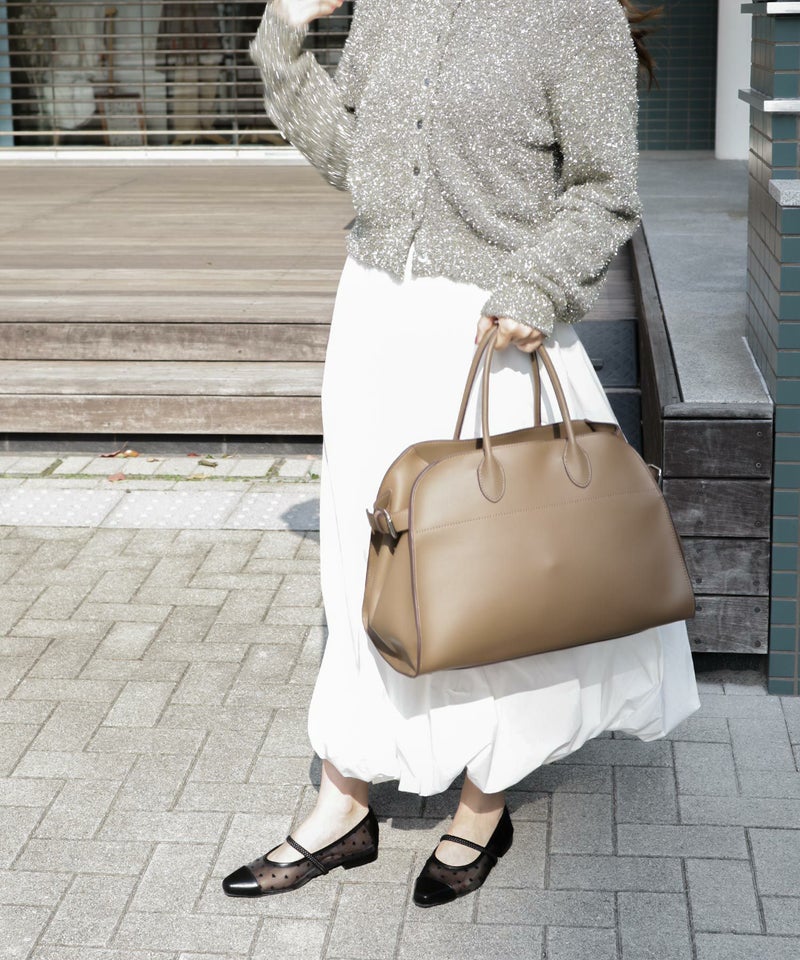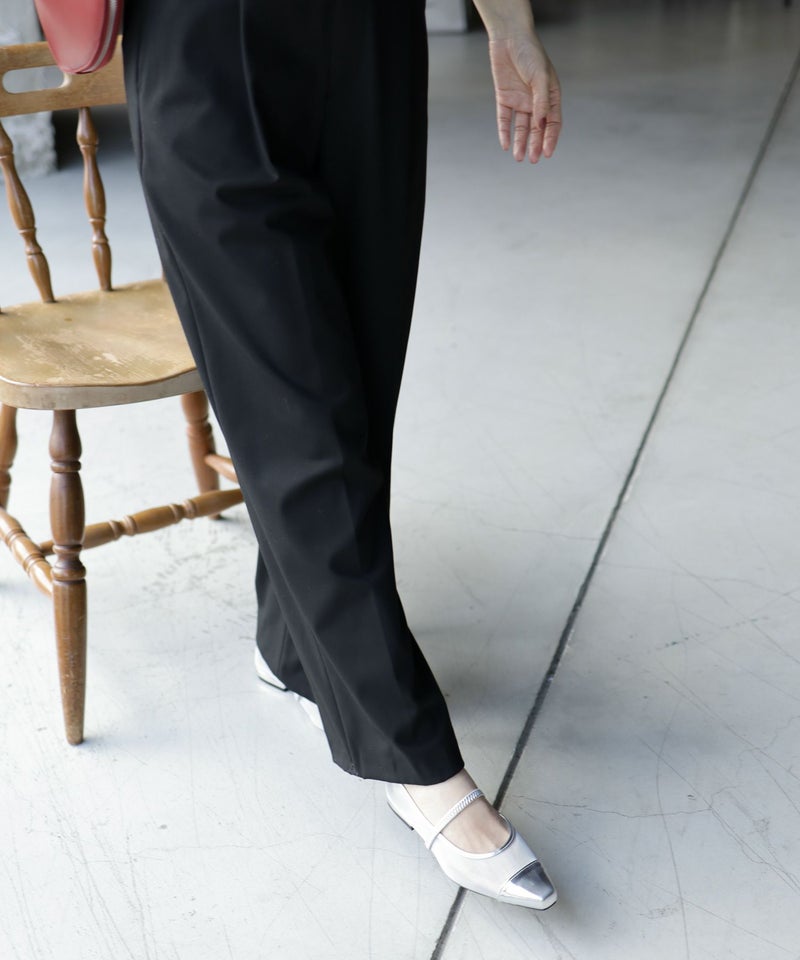 先に向けて細くなるスクエアトゥは、大人っぽい印象に。足先の窮屈さも感じさせず、ローヒールでも足がすらっとして見えます。