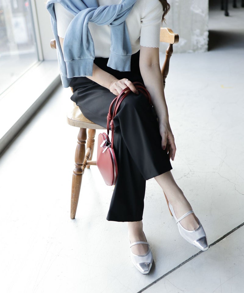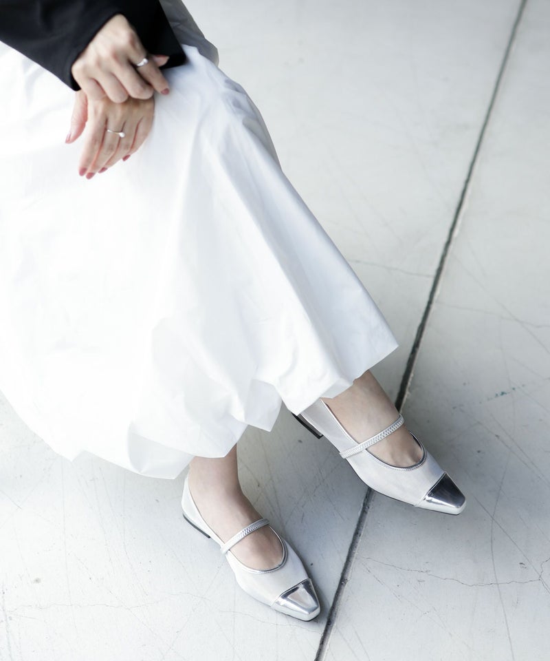 トレンドのメタリック透け感を同時に楽しめるデザイン。甲にストラップの付いたメリージェーンは今季も大注目!