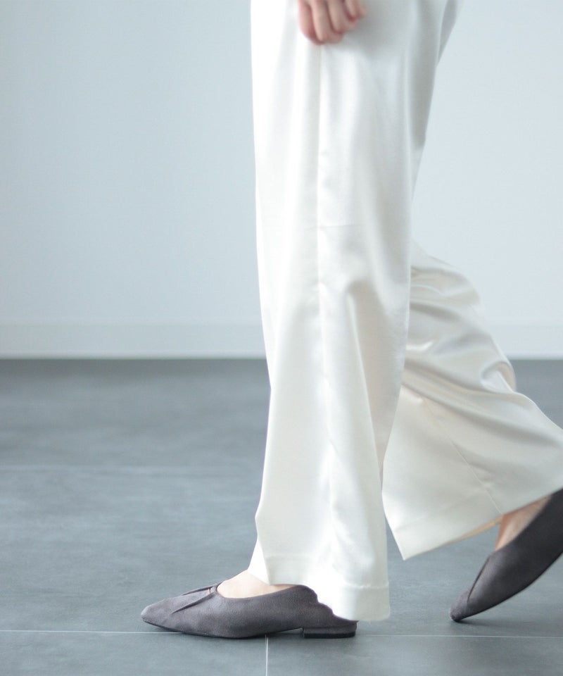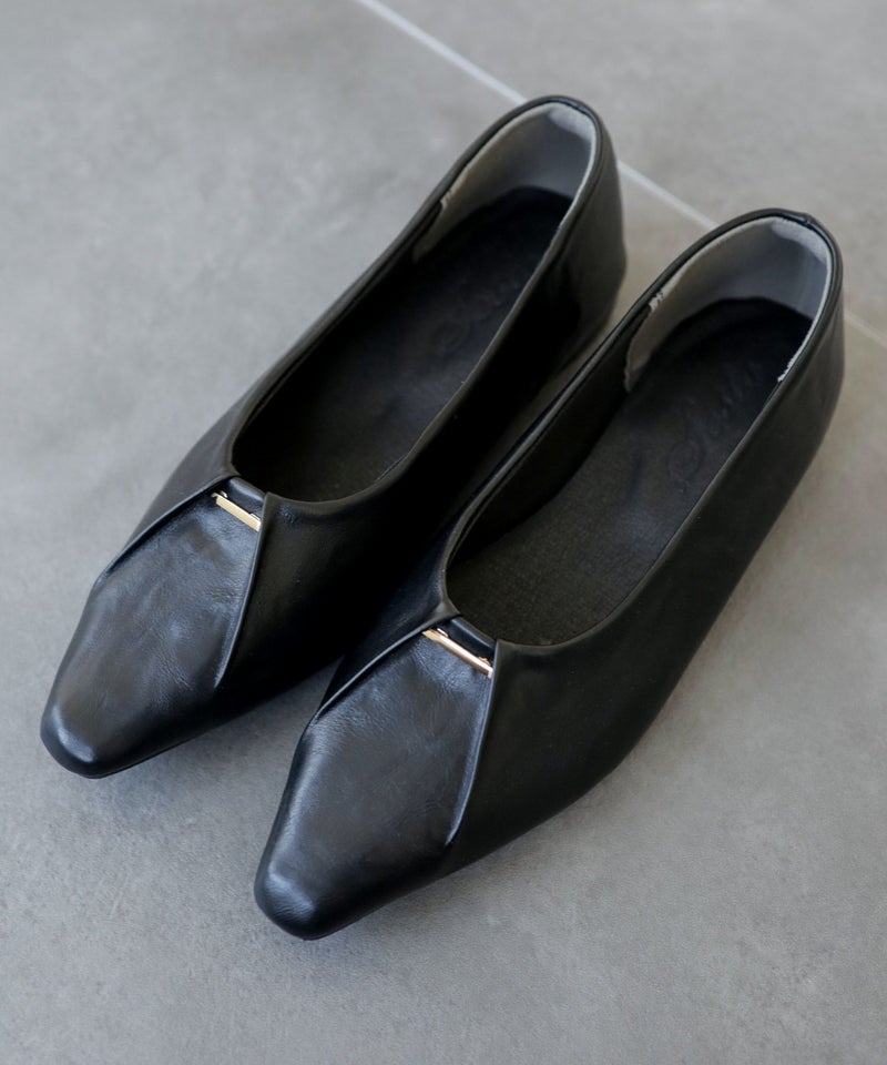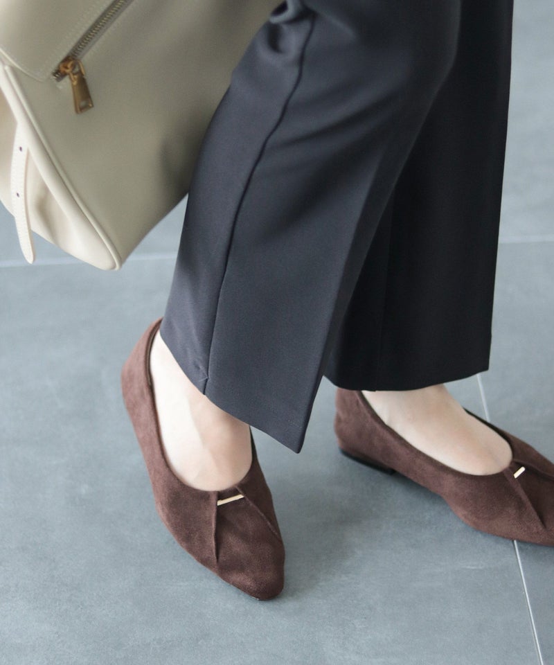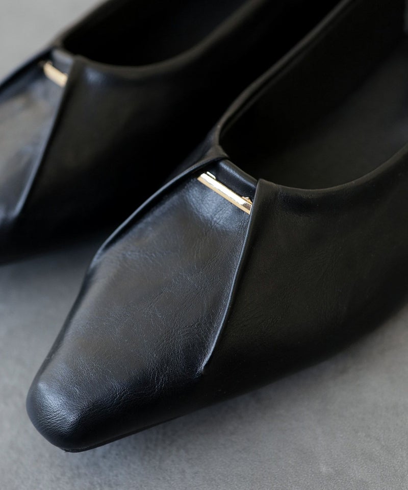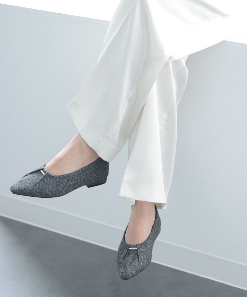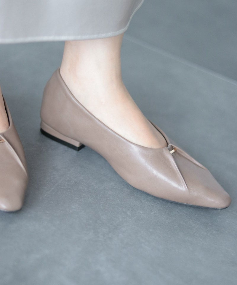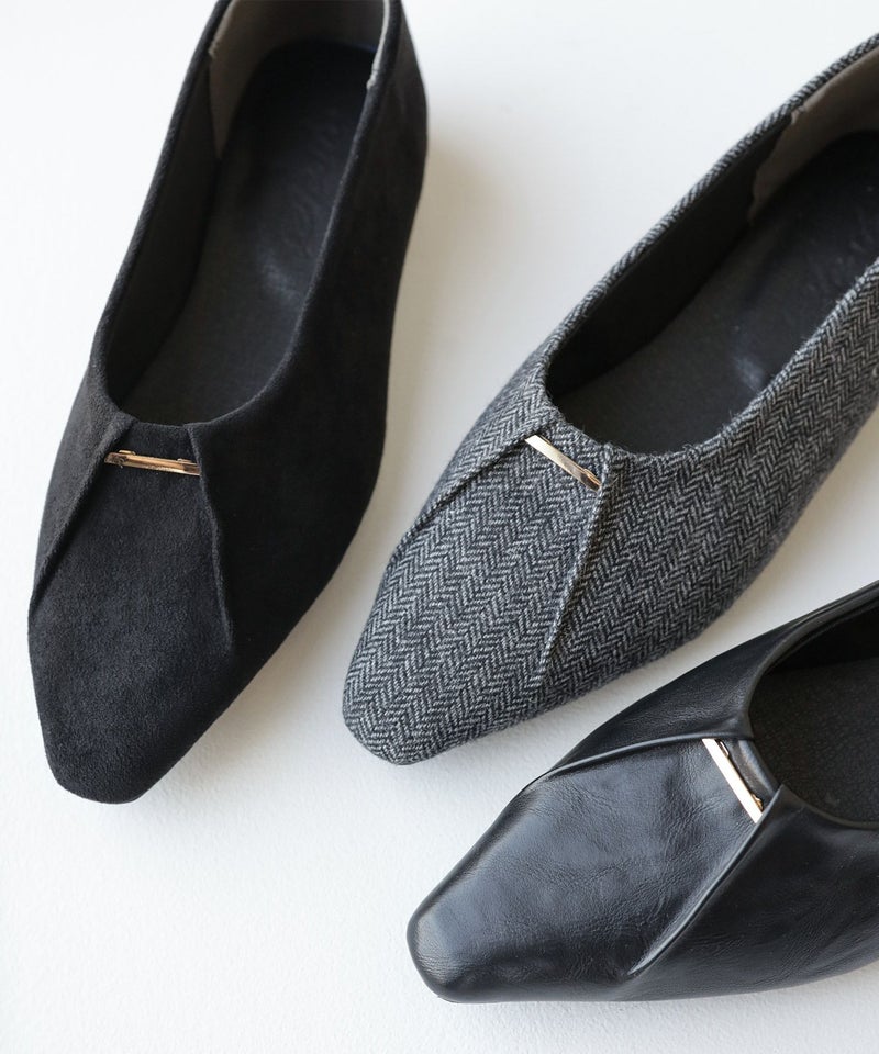 すらっとシャープなフォルムは、足がきれいに見えるセミスクエアトゥ。先端に少し幅があることでつま先全体に余裕が生まれ、ポインテッドトゥよりも窮屈感を感じない形です。