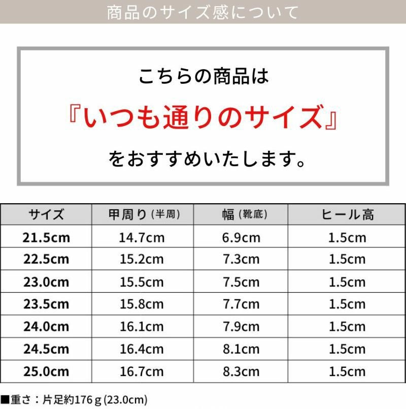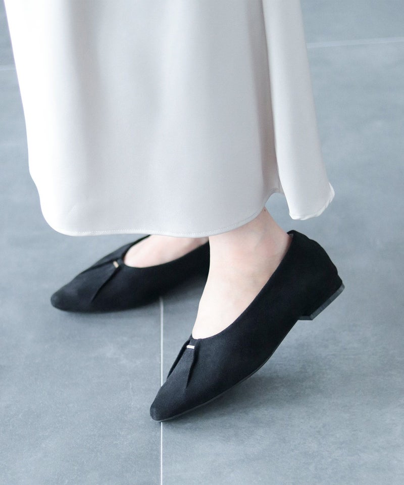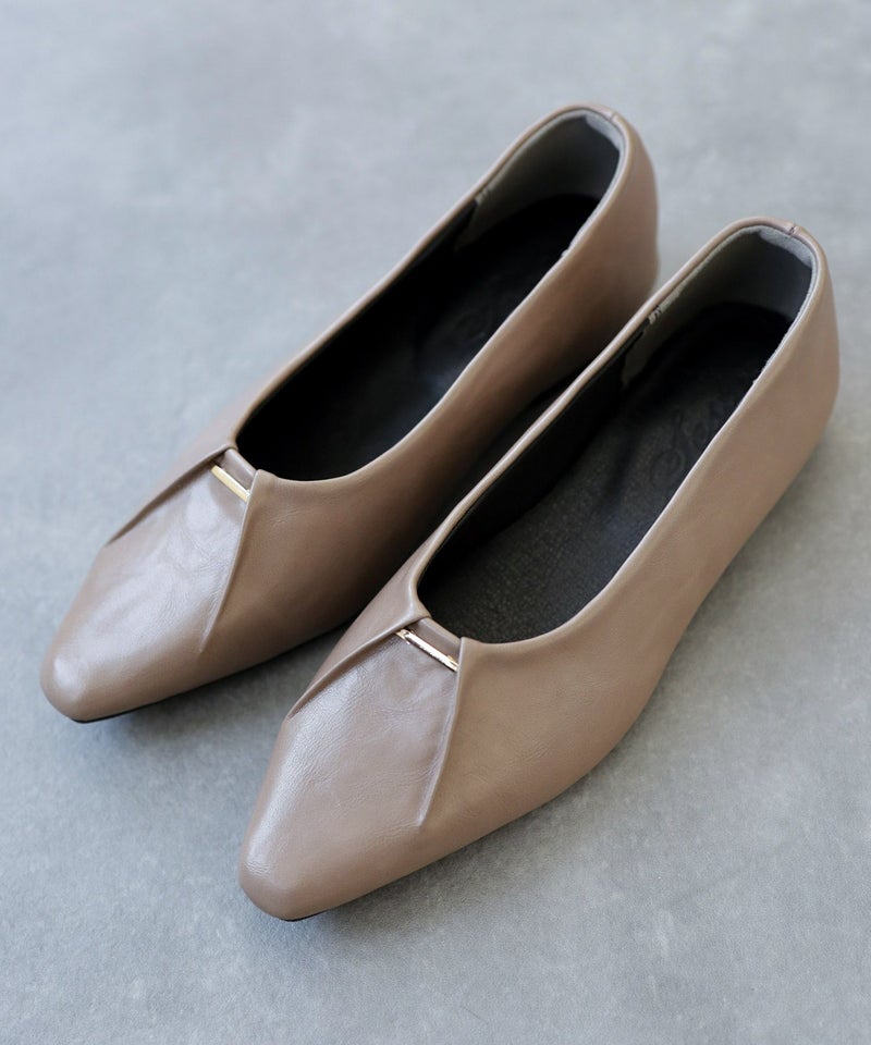 また、かかと同様硬い芯材を入れていないので柔らかく、幅広・外反母趾の方にもオススメしたい一足。ローヒールでも美脚効果抜群で、無理せずスタイルアップできます。