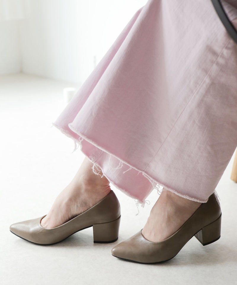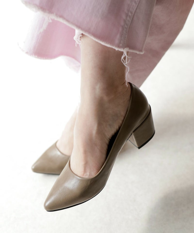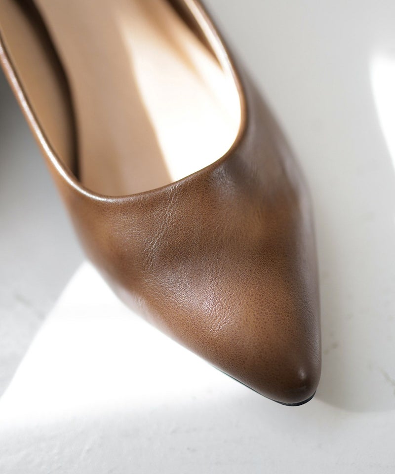 すらっと伸びたポインテッドトゥは、足元をすっきりと見せてくれるシルエット。