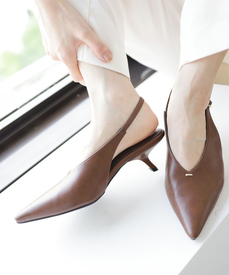 すらっと伸びるポインテッドトゥは美脚効果たっぷり。柔らかい素材で先端は細くても圧迫感はありません。幅広さんもOK。つま先が隠れるのできちんと感があり、オフィスカジュアルやフォーマルなスタイルにもマッチしてくれます。