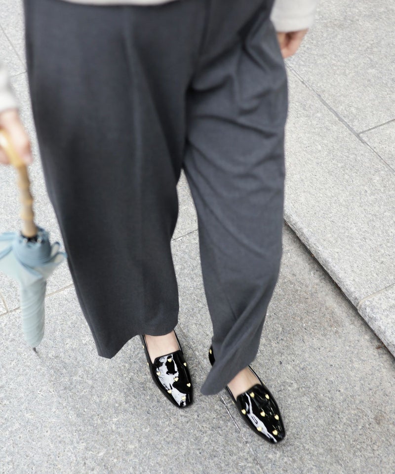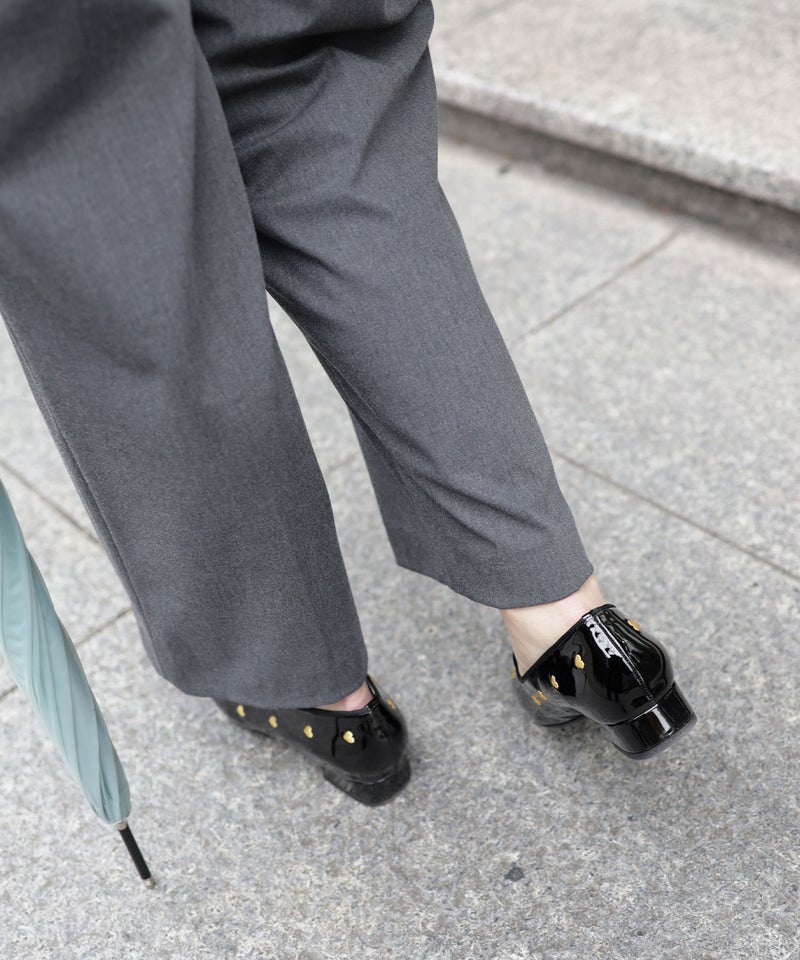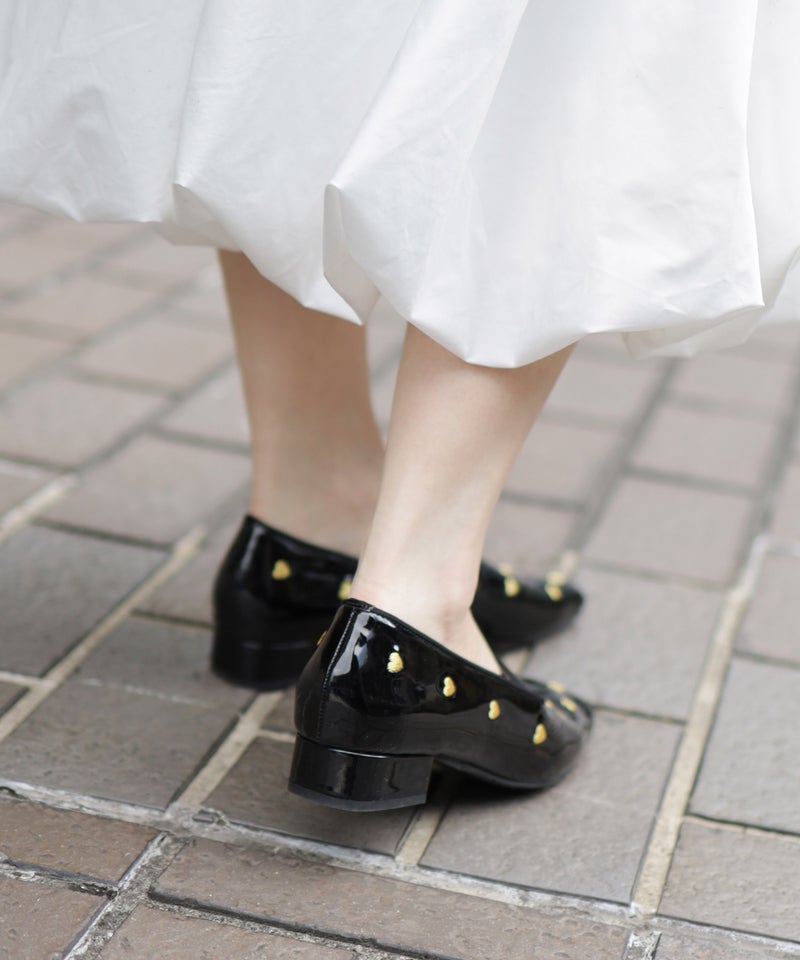 スッキリとしたフォルムとクラシカルなエナメル素材で、大人の可愛さを引き出す一足です。